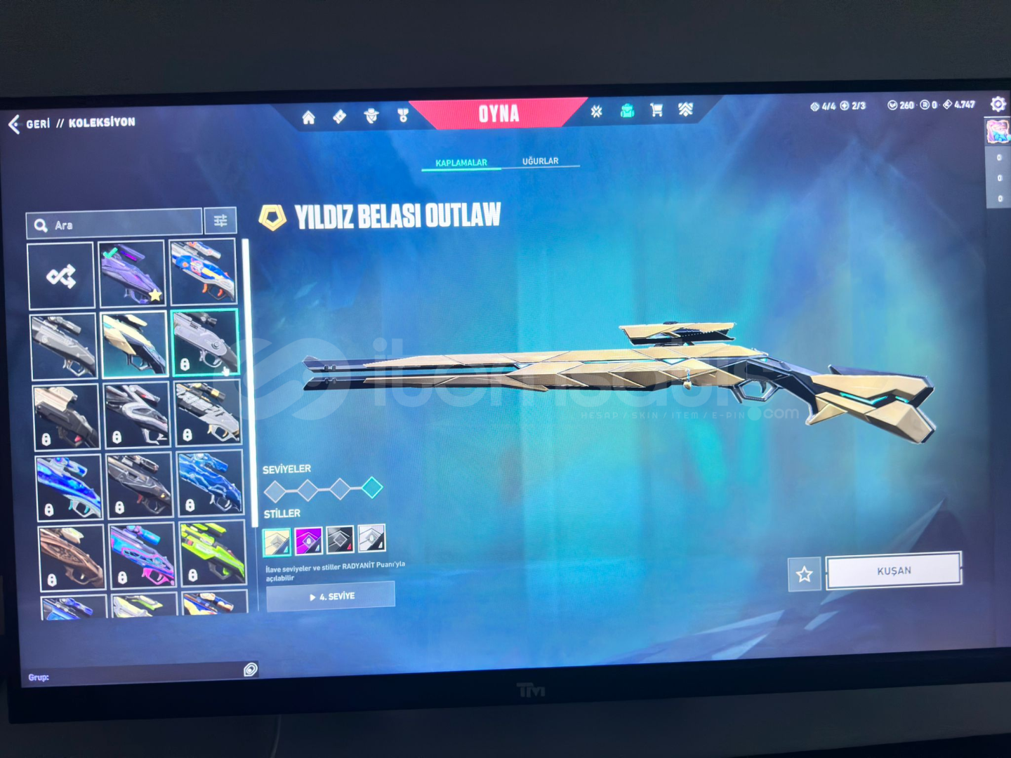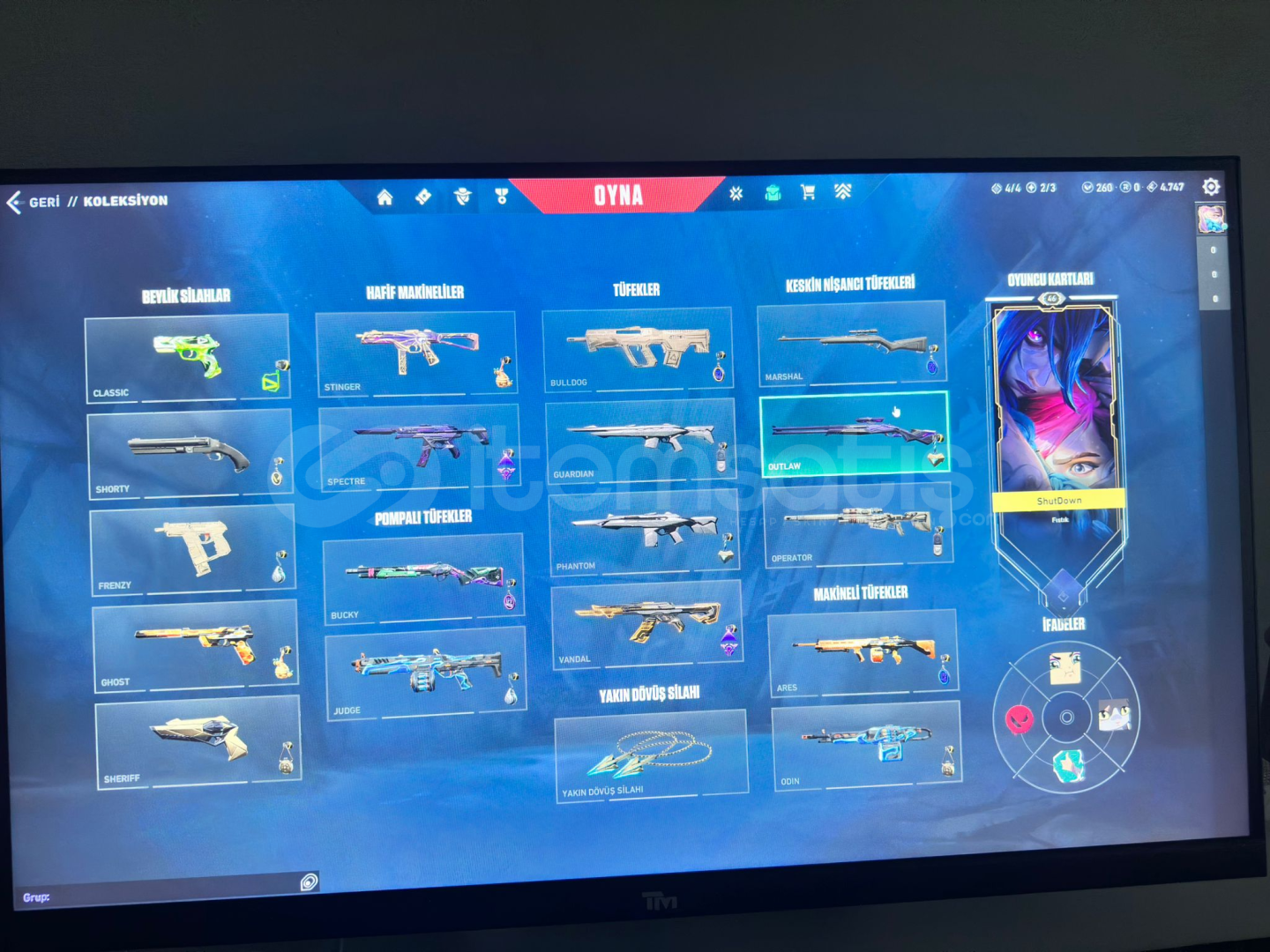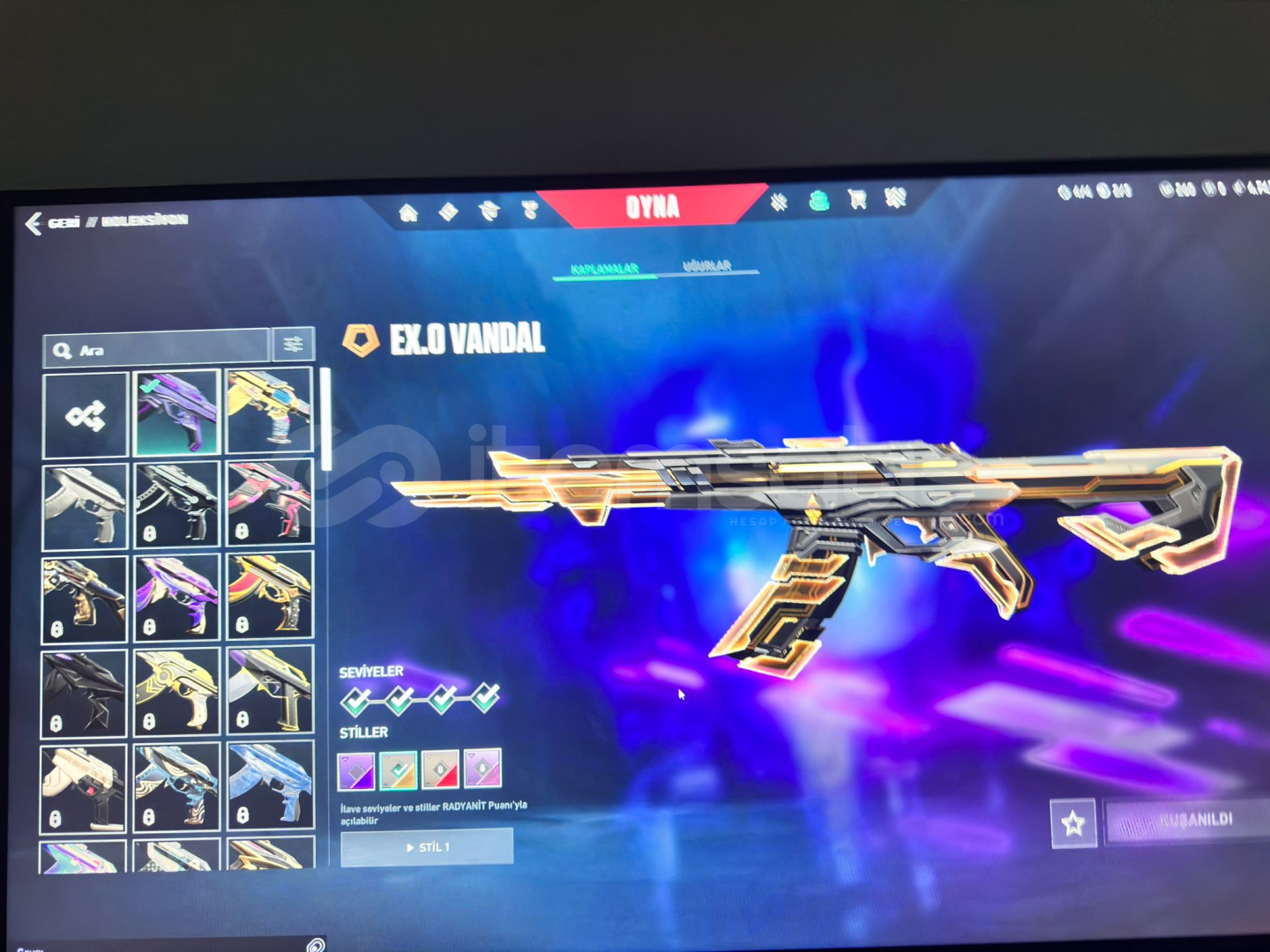 Hesapta 3 bıçak vardırExo setiarcane setiyıldız belası seti mevcutturYıldız ParçalayanExo kılcıArcane EldivenExo VandalArcane Vandalyıldız belası phantomyıldız belası guardianexo outlawyıldız belası outlawexo spectreyıldız belası sheriffexo sherıff vct classic