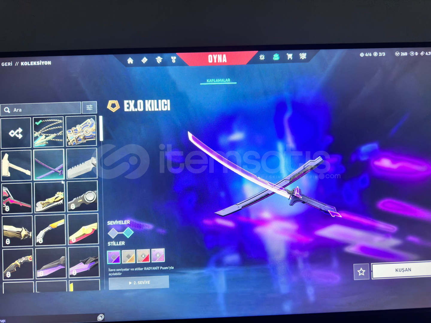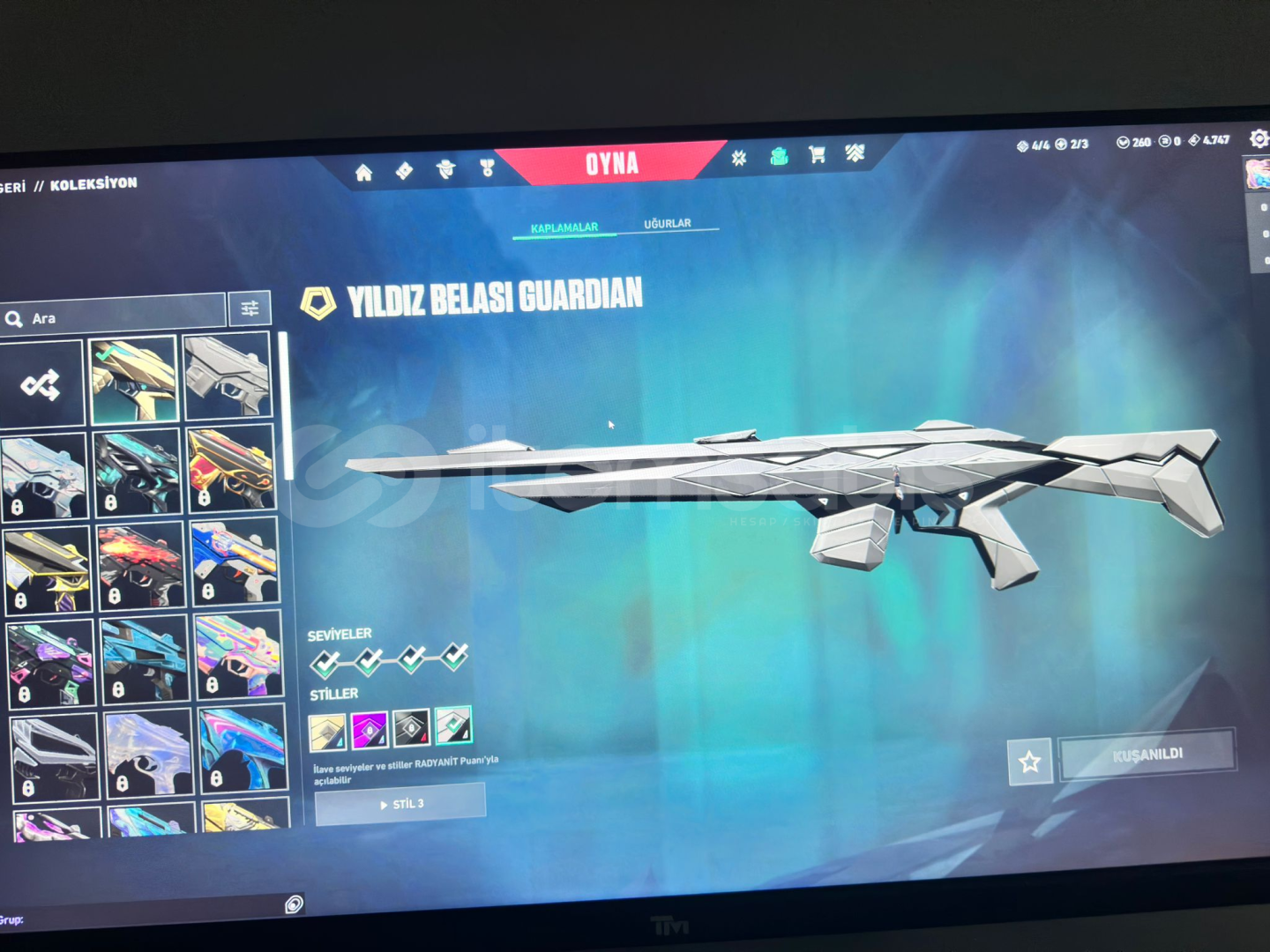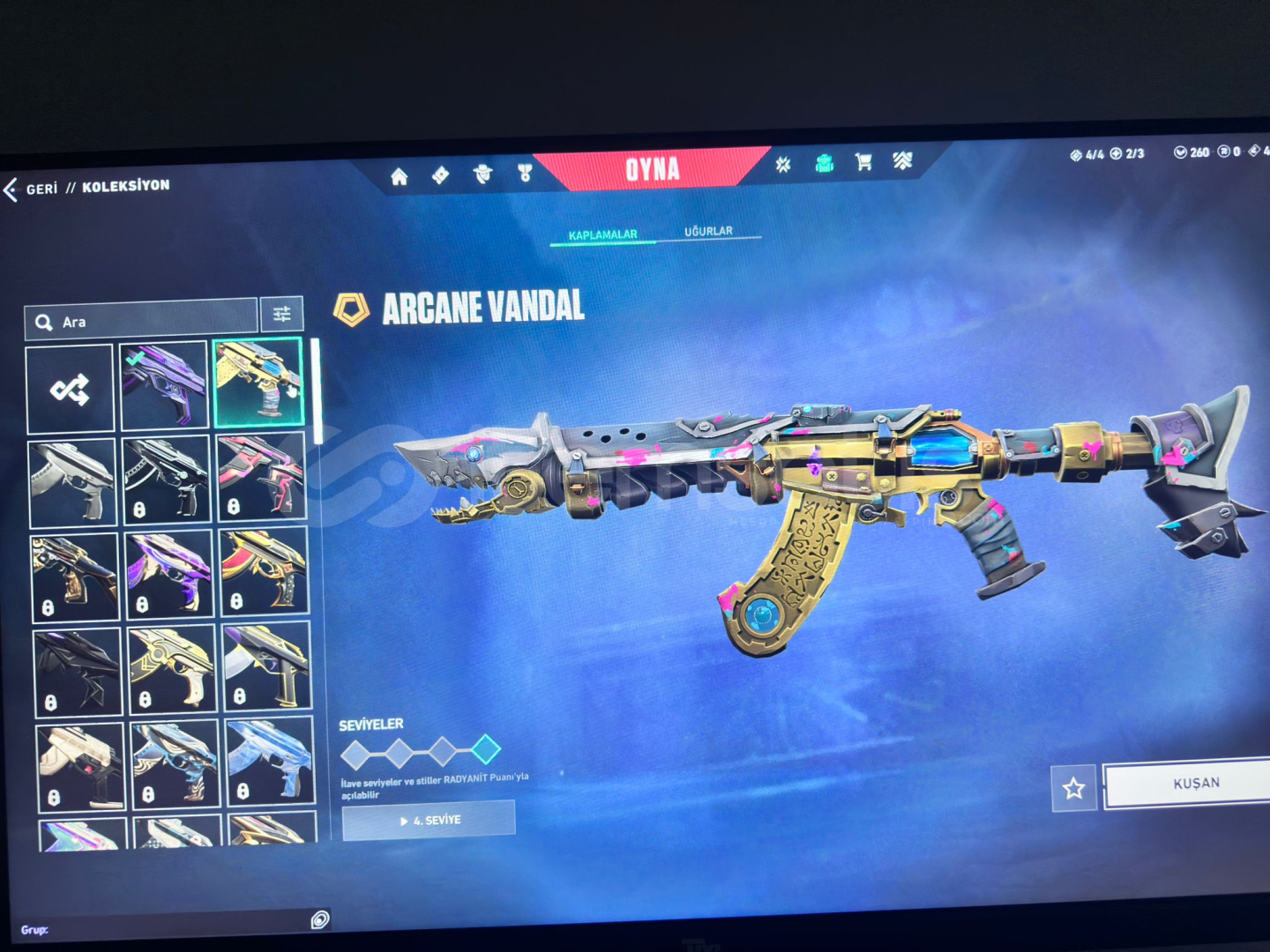 Hesapta 3 bıçak vardırExo setiarcane setiyıldız belası seti mevcutturYıldız ParçalayanExo kılcıArcane EldivenExo VandalArcane Vandalyıldız belası phantomyıldız belası guardianexo outlawyıldız belası outlawexo spectreyıldız belası sheriffexo sherıff vct classic