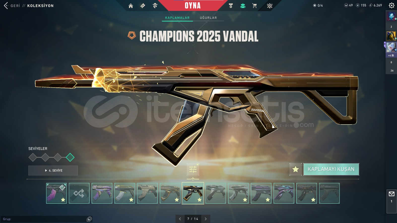 VAlorant full main hesap1=DOLMIR İN İNTİKAMI VANDAL2=ASİL VANDAL3=CESUR YÜREK VANDAL4=CHAMPIONS 2025 VANDAL5=EVRİM VANDAL6=EX.O VANDAL7=KAOSUN BAŞLANGICI VANDAL8=ULUPENÇE VANDAL1=YAĞMACI PHANTOM1=SERİ TETİK SHREIFF2=SIRÇİÇEĞİ SHERIFF1=ULUPENÇE GHOST1=VCT25 X NRG CLASSIC1=CHAMPIONS 2025 KELEBEK BIÇAK2=YAĞMACI KARAMBİTBattle pass ürünleri konulmadı 3 sezon battle pass ü...