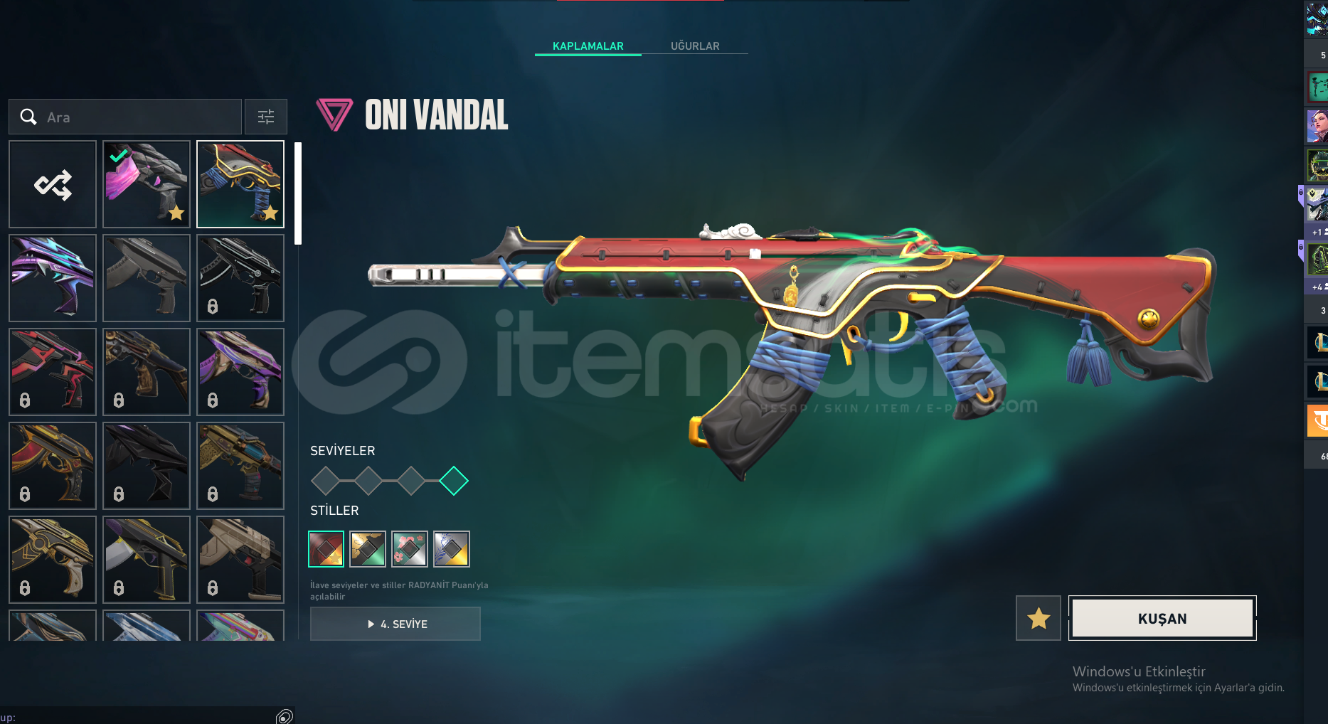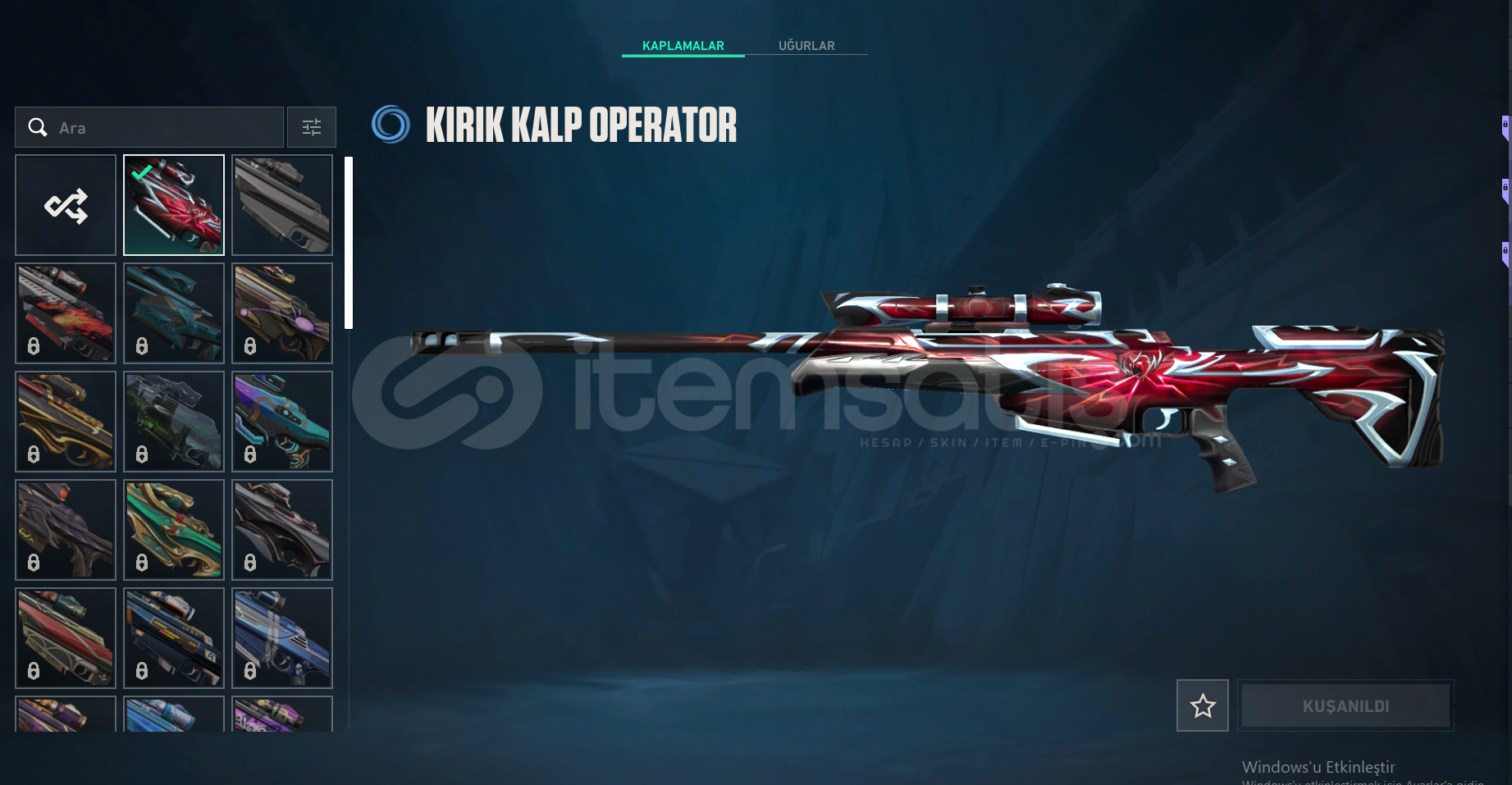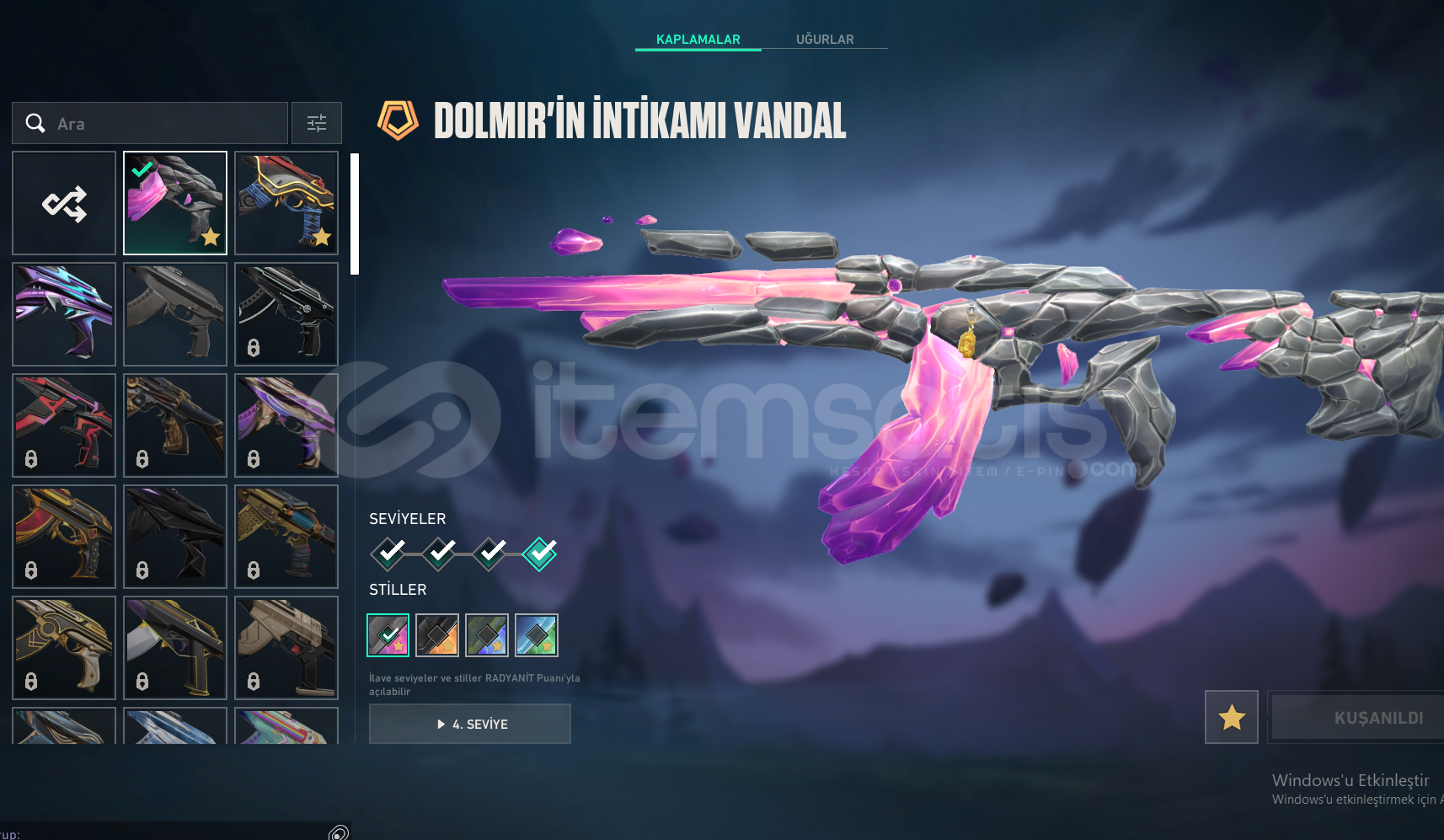 HESABIN İÇİNDE 19 ADET SKİN BULUNMAKTADIR 4 TANESİ HARİÇ DİĞER SKİNLER BATTLEPASSTİR ASİL ODİN ONİ VANDAL UZAYLI AVCISI BIÇAK DOLMİRİN İNTİKAMI VANDAL DİĞERLERİ BATTLEPASS SKİNLERİDİR LÜTFEN CİDDİ ALICILAR YAZSIN ALANA ŞİMDİDEN HAYIRLI OLSUN HESAP ELMAS RANKINDADIR.