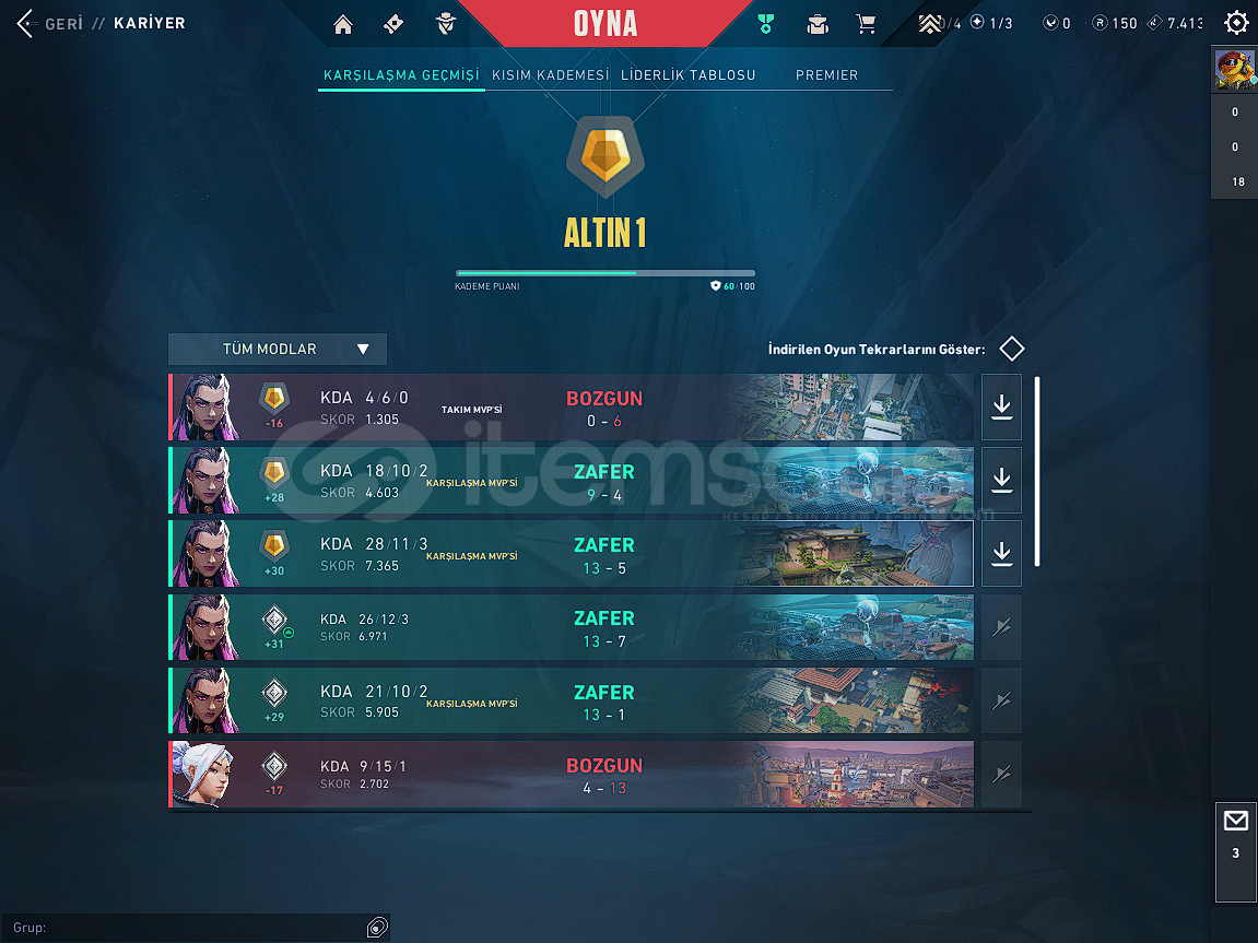 VALORANT GOLD 1 MAİL DEĞİŞEN HESAPMAİL DEĞİŞİM YAPILACAKTIRYÜKSEK MMR HESAPTIR...