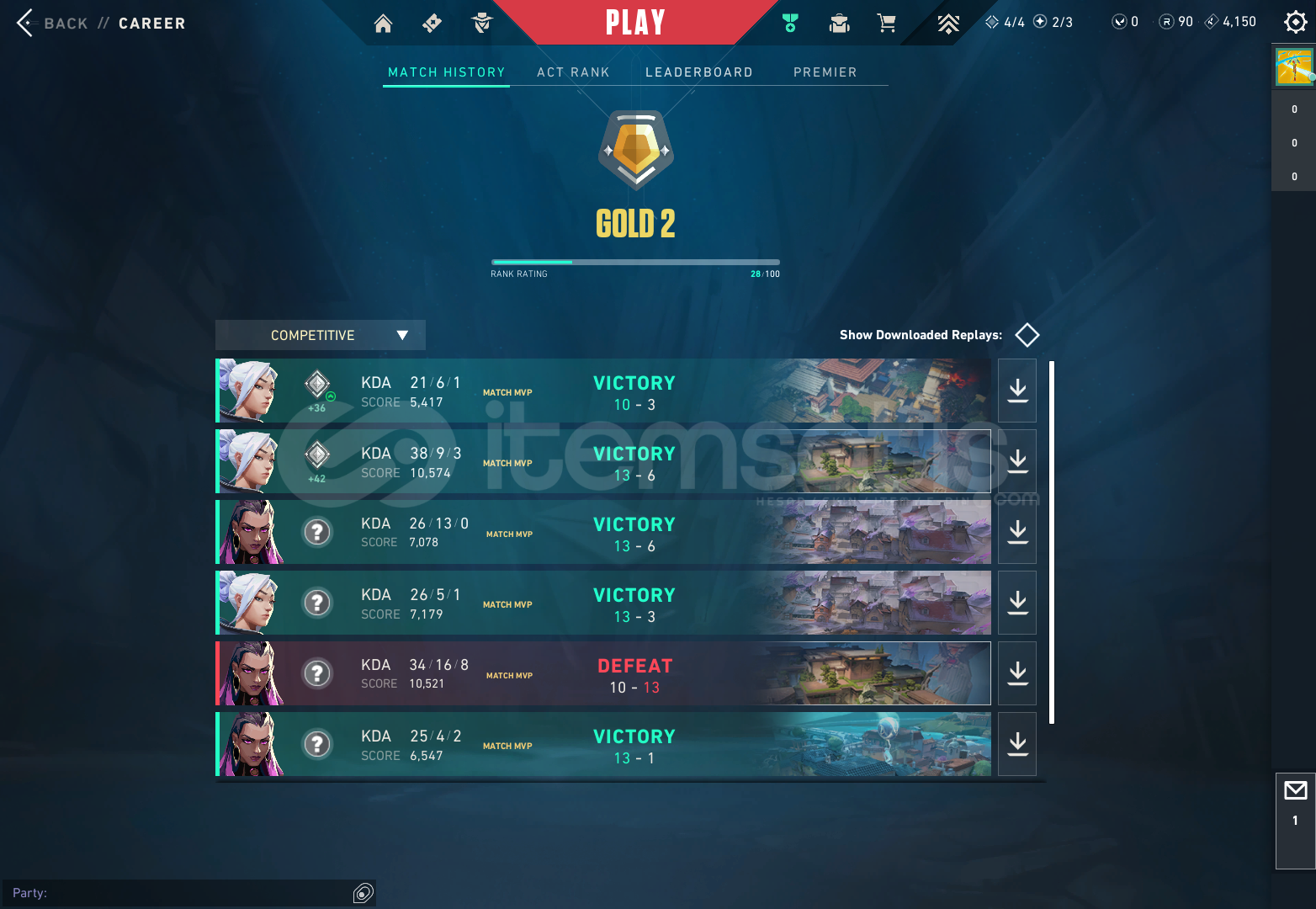 VALORANT Gold/Altın 2 FRESH YUKSEK MMR HESAP