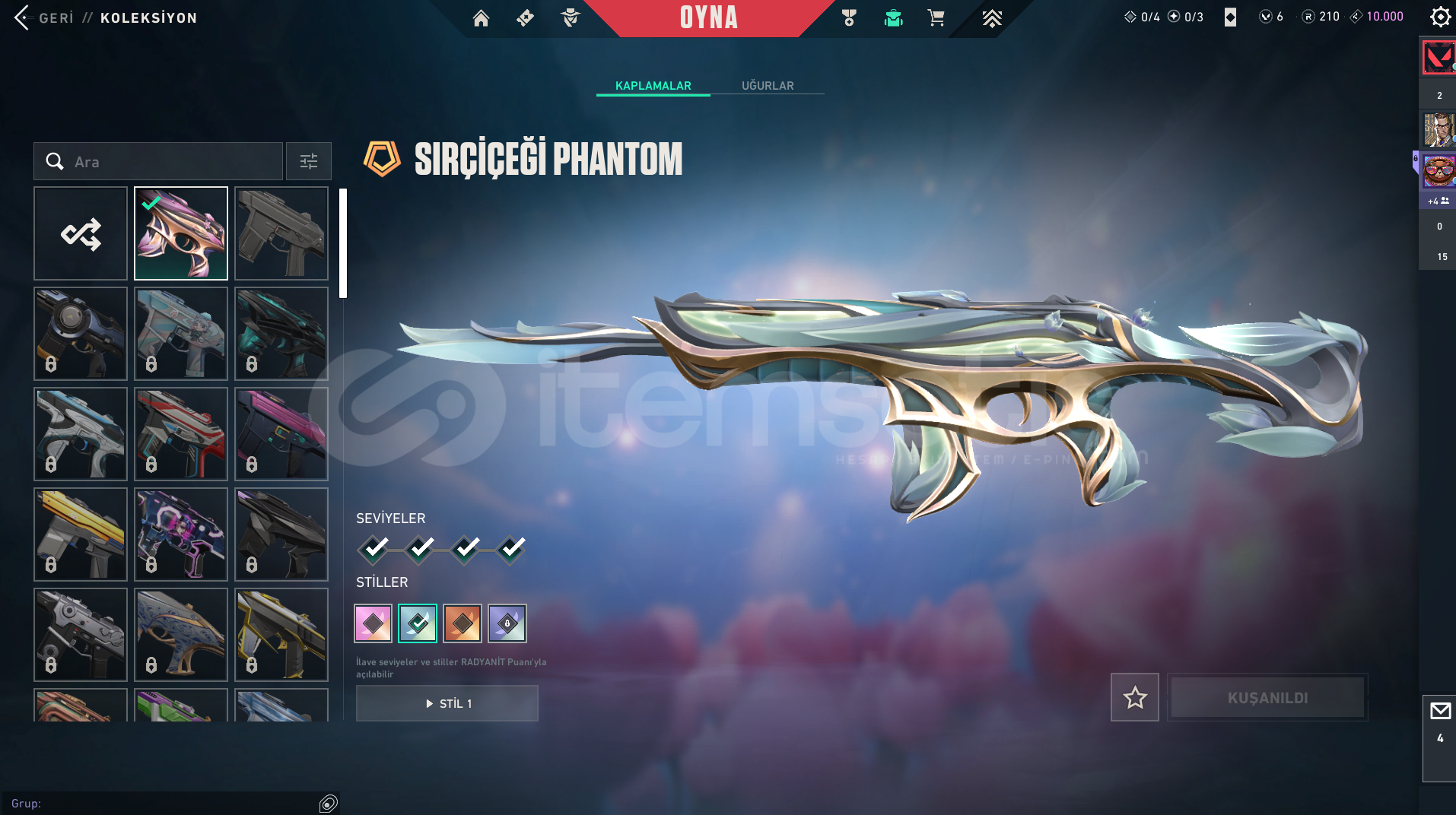 Hesapta 3 adet paralı skin vardır