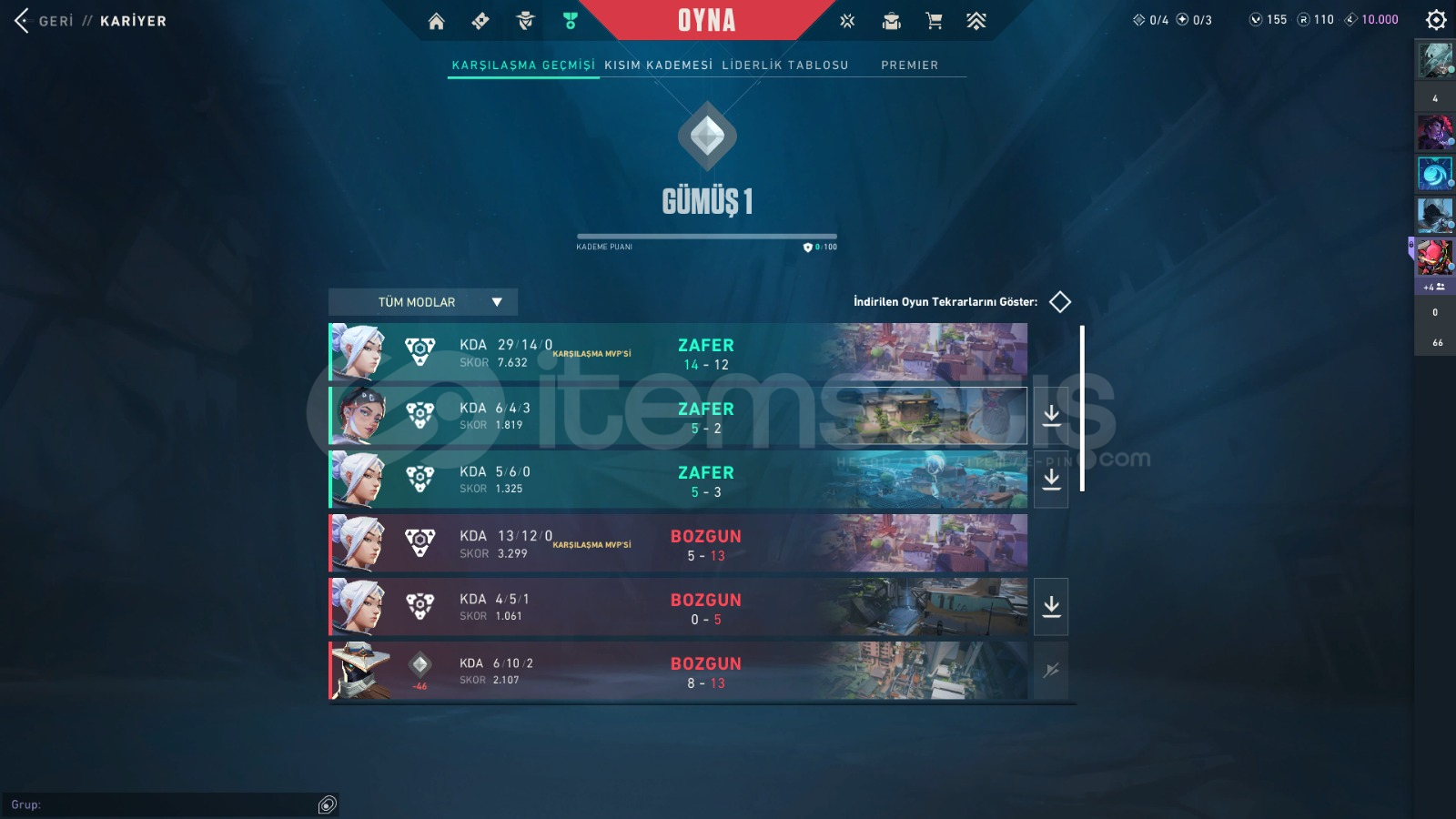Valorant main hesabımGümüş 1242 LVLPara ihtiyacım olduğu için satıyorumDesenler fotoğrafta varToplam 7154 tl harcadımPAZARLIK SÜNNETTİR