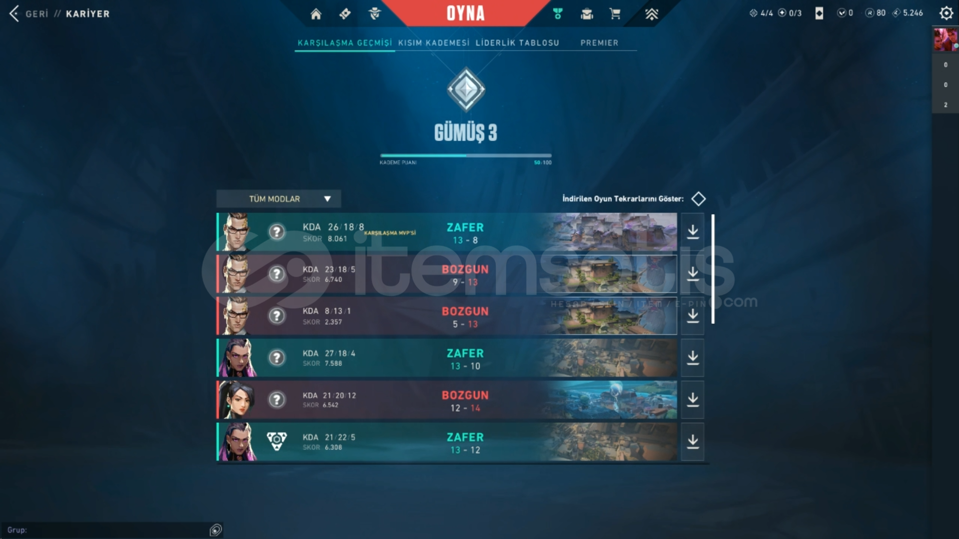Valorant Gümüş 3 Hesap (ilk Mail İle Devir Teslim) Temiz Kasıldı Temiz Hesap aktif kullandığım bir hesaptırAnında Teslimat