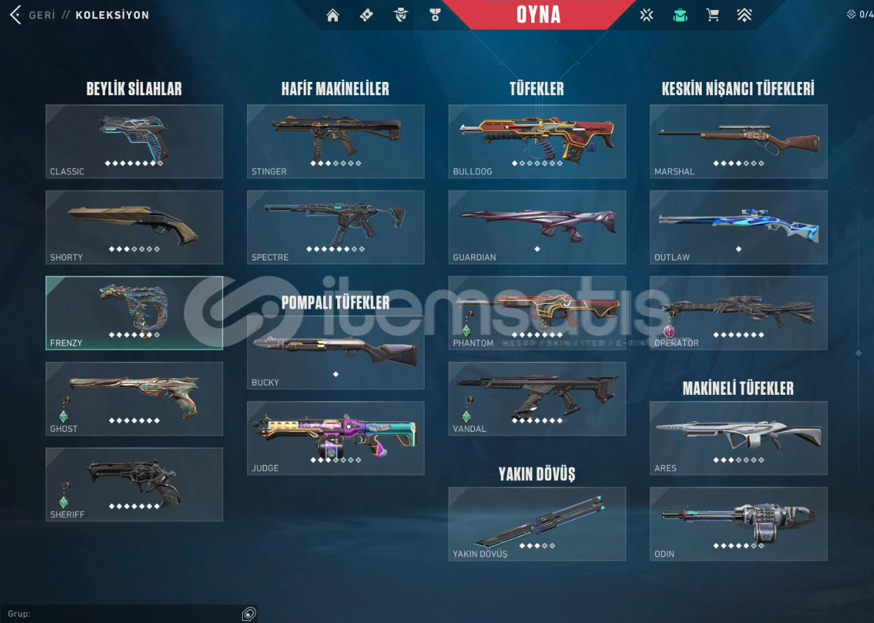 NOT: Oyunu bıraktım gayet temiz hesap isterseniz discord üzerinden daha detaylı bilgi alabilirsiniz DC: QareJ TABANCALAR RGX Clasic Yitik Clasic Yıldız Belası Shorty Ejder Frenzy Fatih Ghost Seri Tetik Sheriff Yağmacı Sheriff POMPALILAR Hükümdar Bucky Delipop Judge SPECTRE RGX Spectre Yağmacı Spectre GUARDİAN İğnekabuk Guardian VANDALLAR Kuronami Vandal Asil Vandal Cesur Yürek Vandal Champions 2023 Vandal Ejder ...