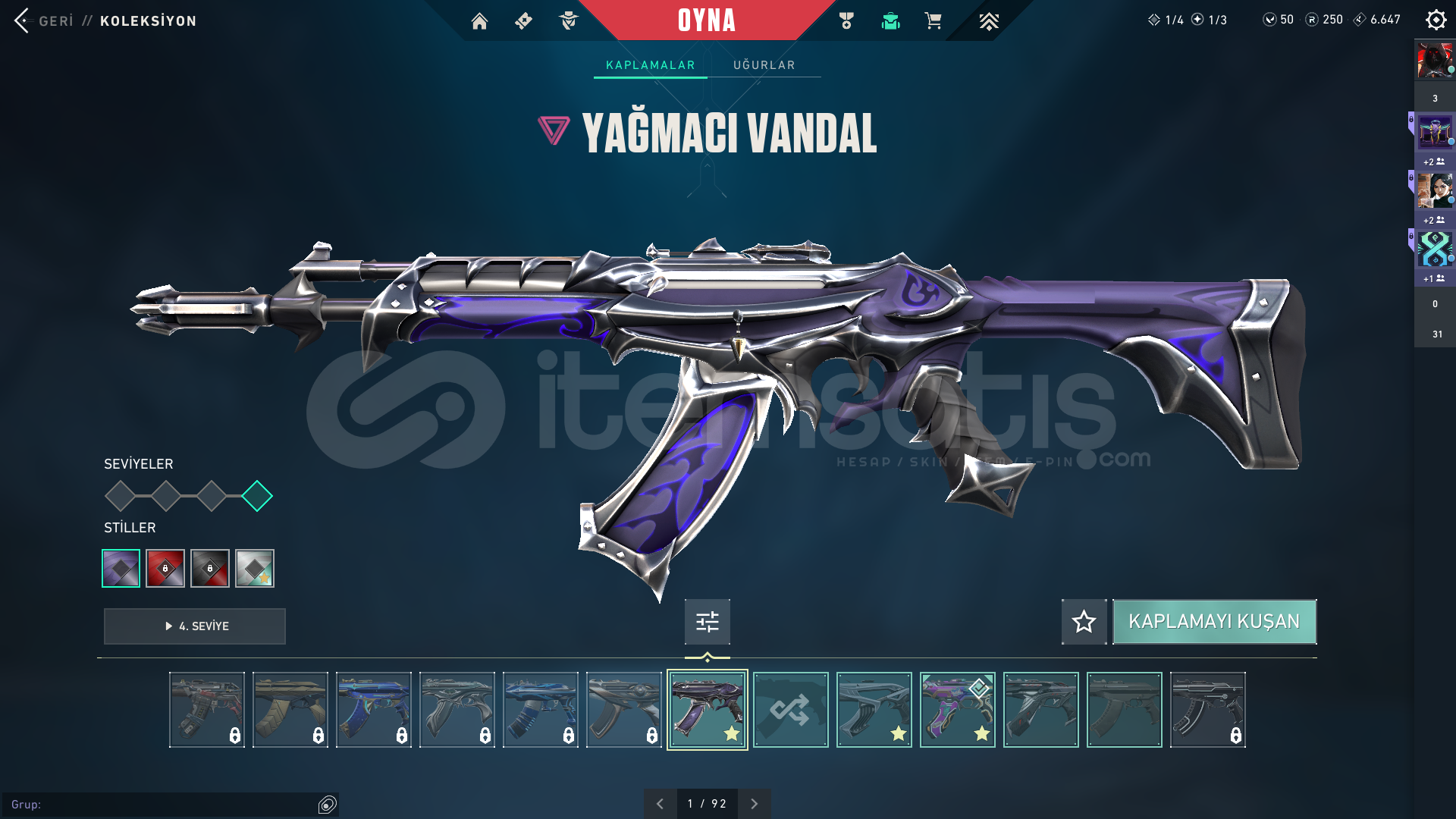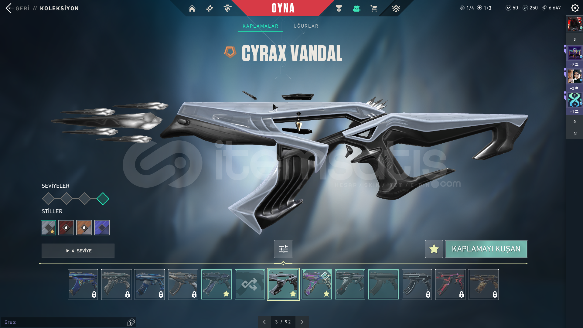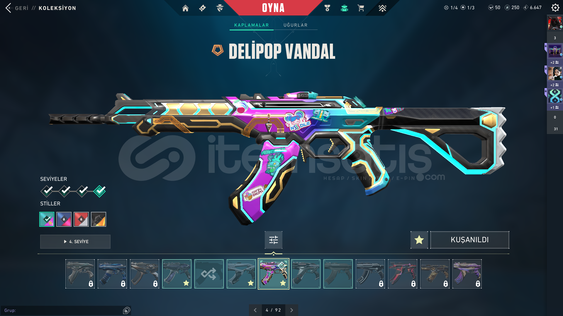 hesapta bütün karakterler vardırtoplam 21k vp yatırılmıştırhesapta olan skinler:zifiri phantomyağmacı vandaldelipop vandalcyrax vandalexo spectreTüm hesaplar satışa sunulmadan önce özenle kontrol edilir. Ban, kısıtlama veya şüpheli bir durum bulunmamaktadır. Güvenli ve sorunsuz bir oyun deneyimi yaşamanız için gerekli tüm testler yapılmaktadır.Satın al...