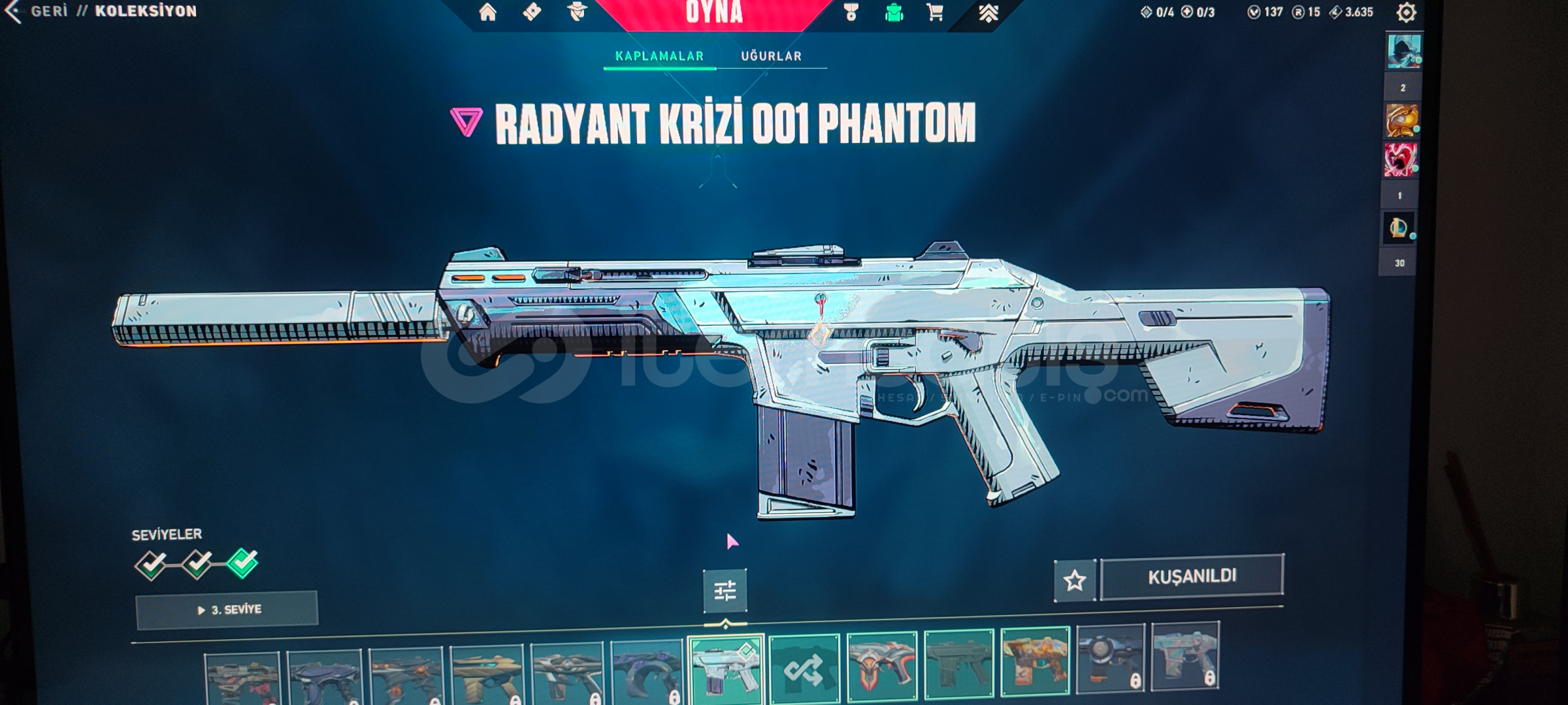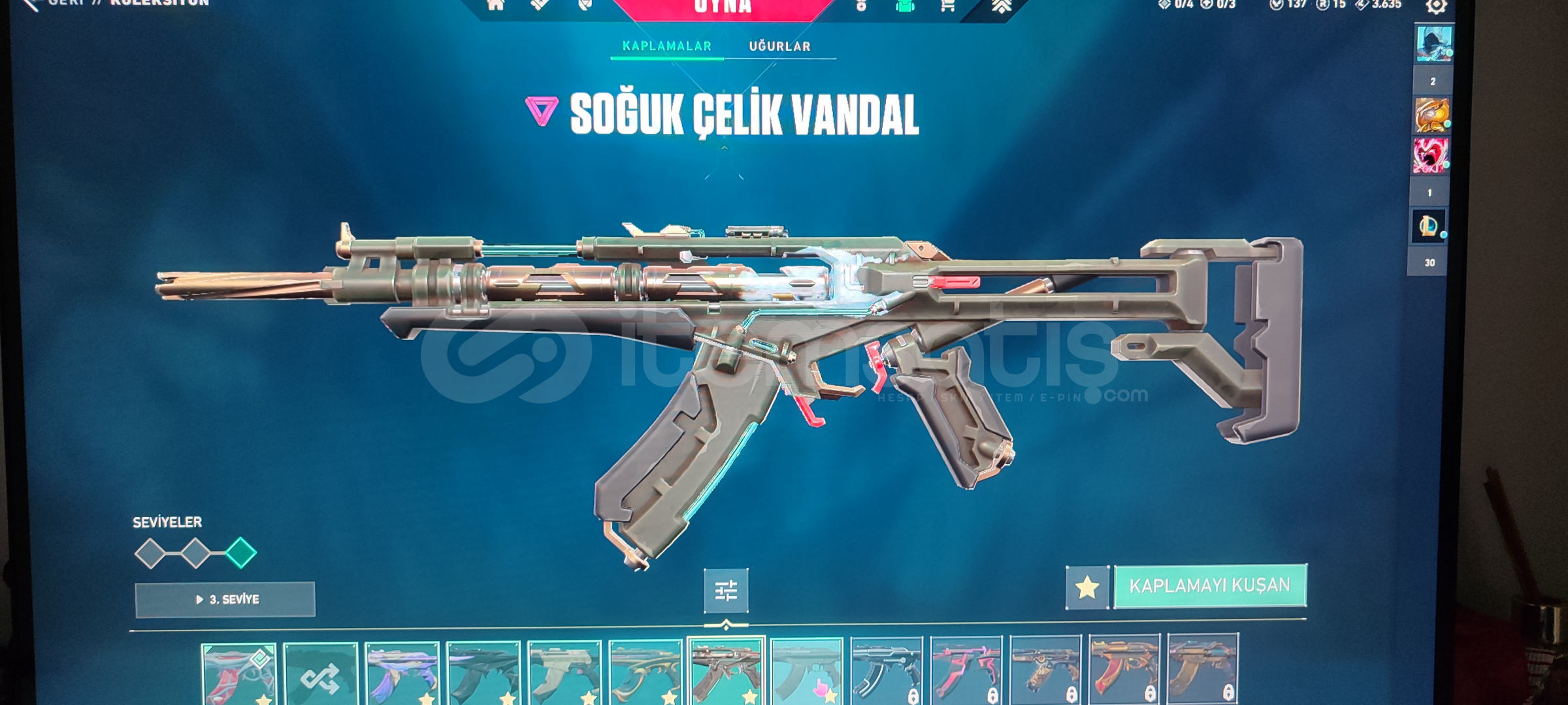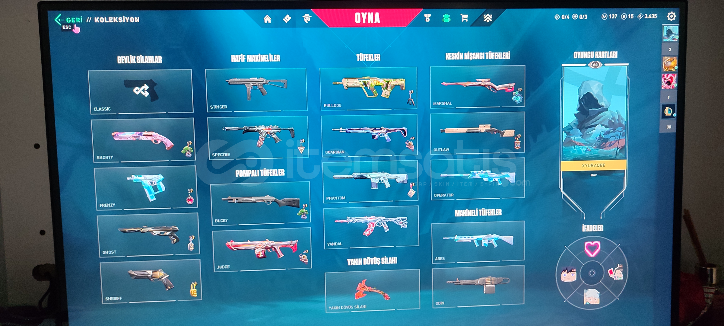 Satılık Valorant hesabı — tamamen temiz, cezasız, aktif kullanılan hesap.Toplam skin VP değeri: 20.000 VP (yaklaşık 6.500–7.000 TL yatırım).Hesap Özeti:🔹 Vandal: Gaia, Albeni, Anomali, Atlas // KTM, Cesur Yürek, Soğuk Çelik🔹 Phantom: Radyanit Krizi 001, Galaksi Muhafızı, Sükûnet🔹 Ghost: Ulu Pençe, Albeni🔹 Sheriff: Solarex, Uzaydelen🔹 Guardian: Ha...