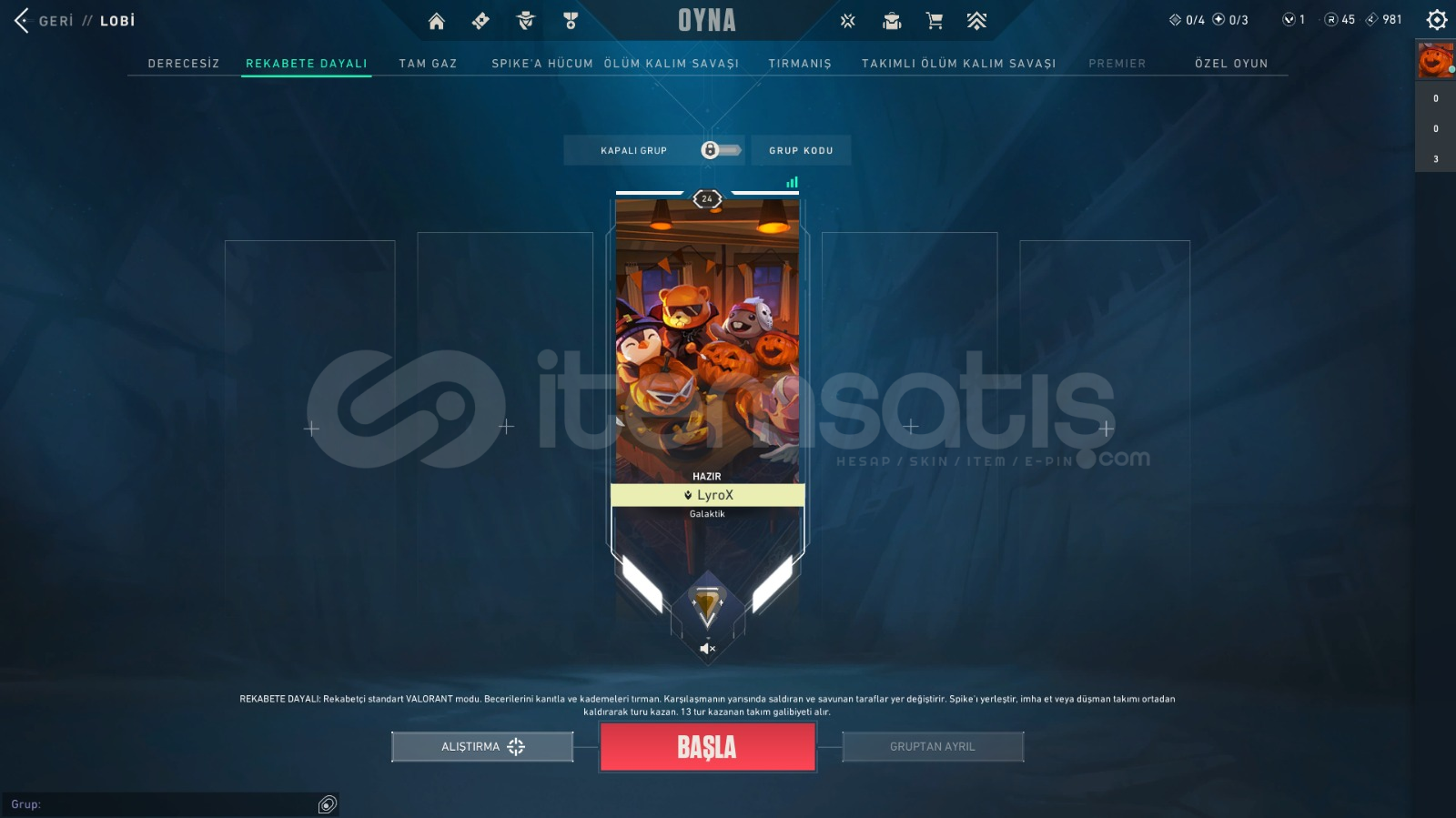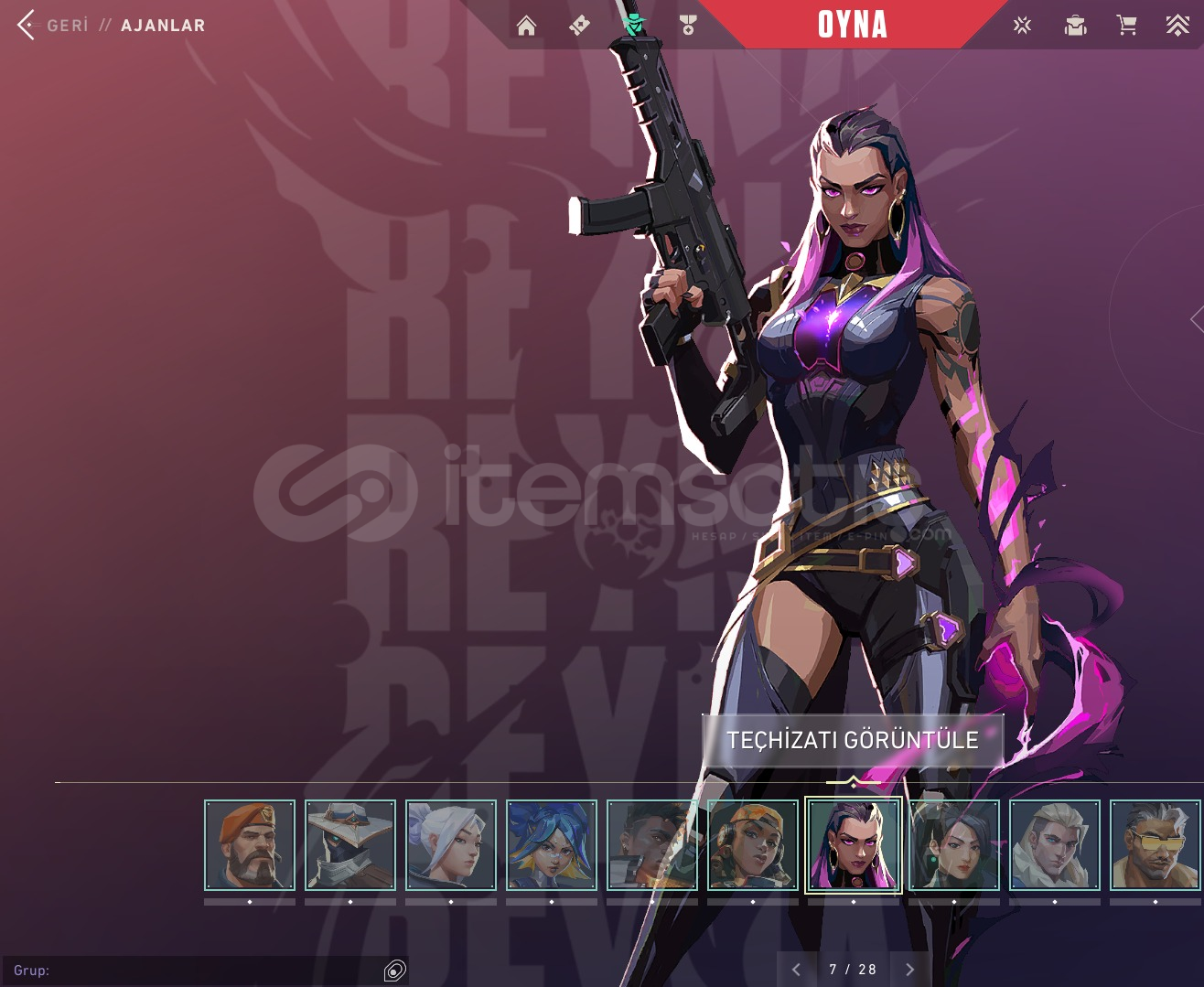 Hesap İçerisinde Ajan Olarak: Brimstone / Cypher / Jett / Neon / Phoenix / Raze / Reyna / Sage / Sova / Tejo Açık.