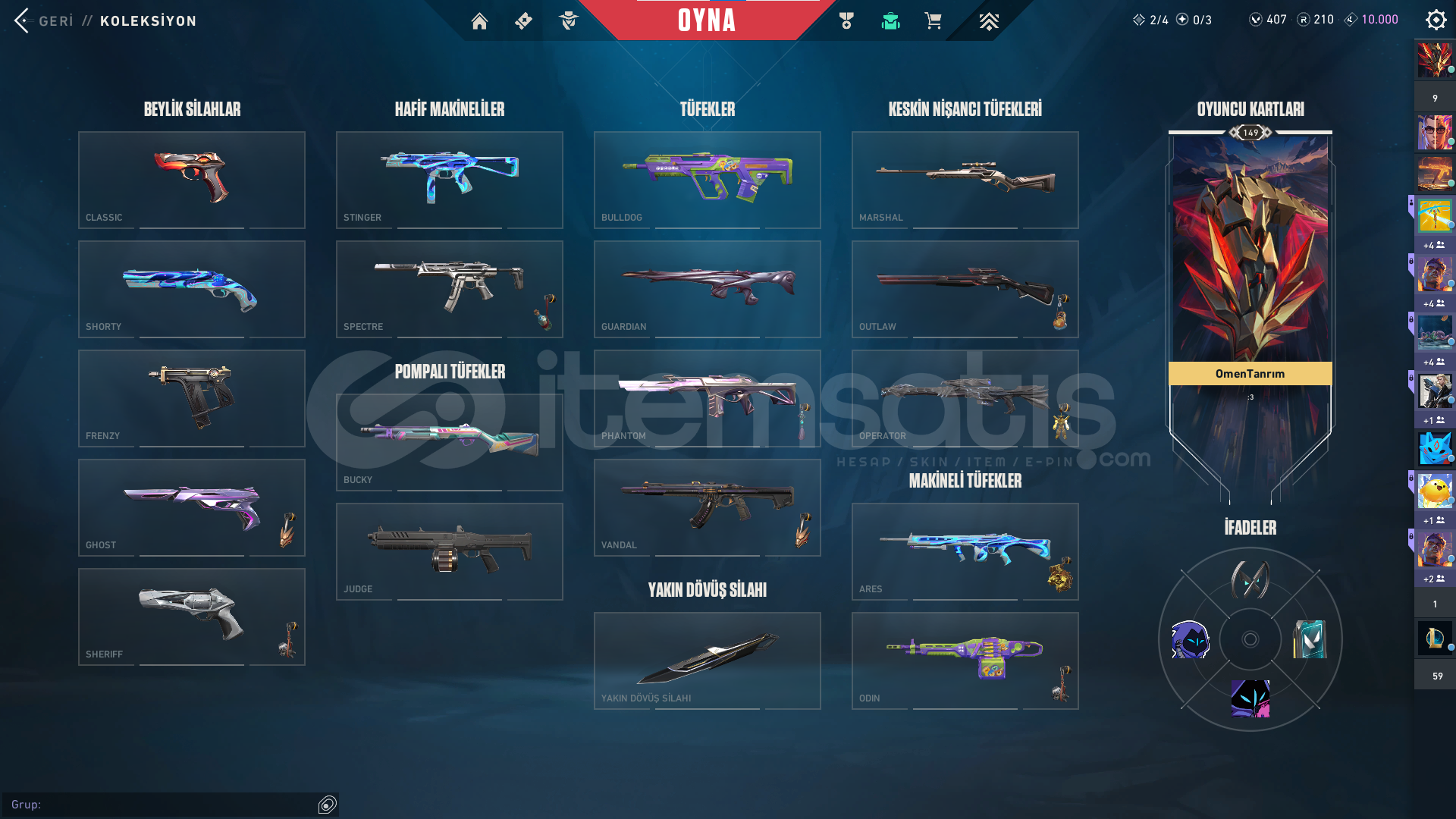 Hesapta meta skinler mevcut, özellikle Vandal + Operator tarafı çok güçlü kombinasyonlu bir koleksiyon.