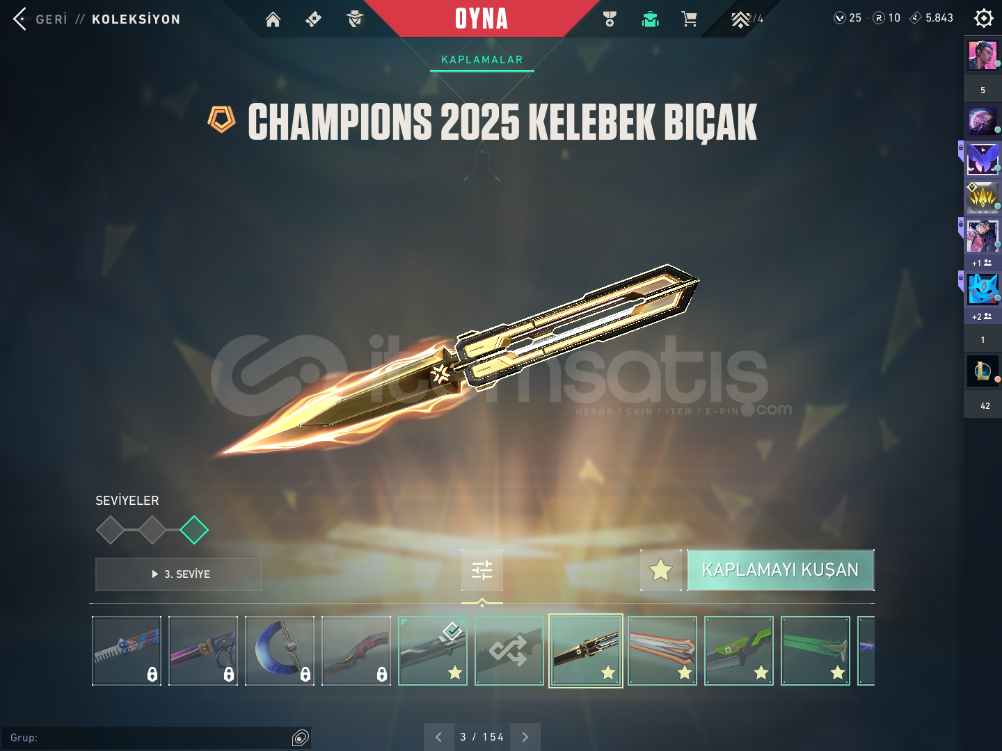 🔥 Hesap Özellikleri:Seviye: 184Rank: GoldSunucu: TR (Türkiye)Mail erişimi: 💯 (teslim edilirken güvenli devredilir)Hiç ban veya ceza geçmişi yok.💎 Skin Koleksiyonu 🟣 Vandal KoleksiyonuKuronami Vandal ⚡Champions 2025 Vandal 🏆Cesur Yürek Vandal ❤️Arcane Vandal 💫Asil Vandal 👑Gaia Vandal 🌿Dolminar Vandal 🔮⚫ Phantom ve Diğer SilahlarZifiri Phantom 🌌...