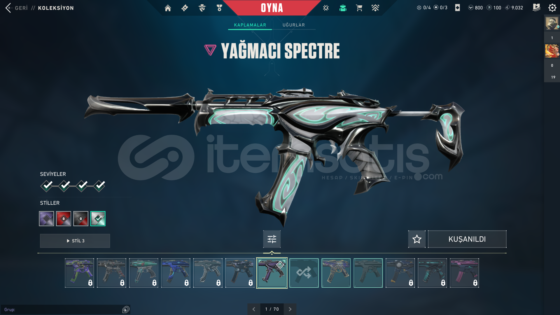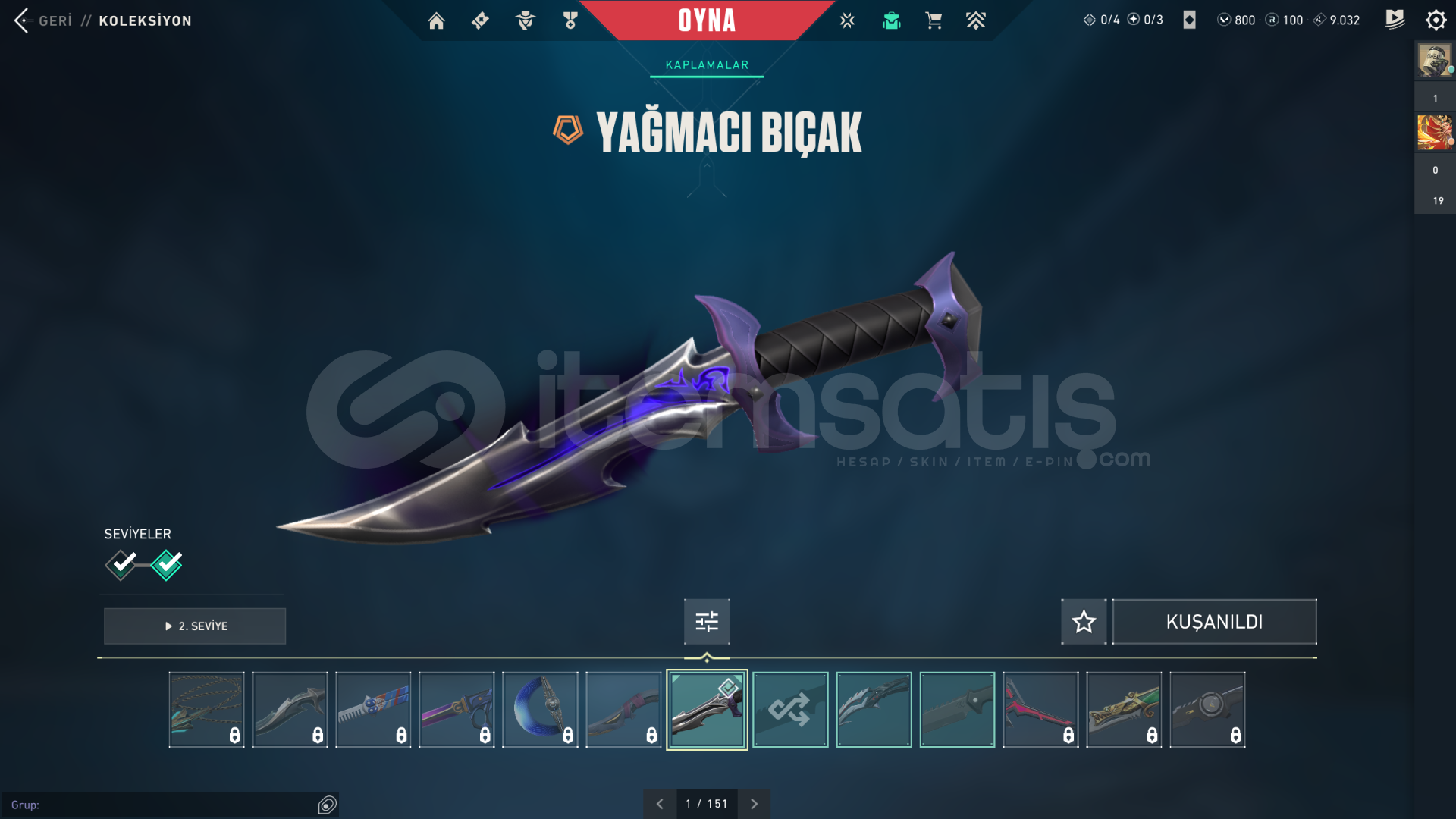 VALORANT HESABI YAĞMACI BIÇAKLI VE BOL VANDALLI GEÇEN SEZON ALTIN 1 KADEME YAĞMACI BIÇAK / KAOS VANDAL / GAİA VANDAL / EXO VANDAL / YAĞMACI SPECTRE / ANOMALİ SHERİF MAİL DEĞİŞİR HER HANGİ BİR SORUNU YOKTUR PAZARLIK YAPILIR TEKLİF YAPIN