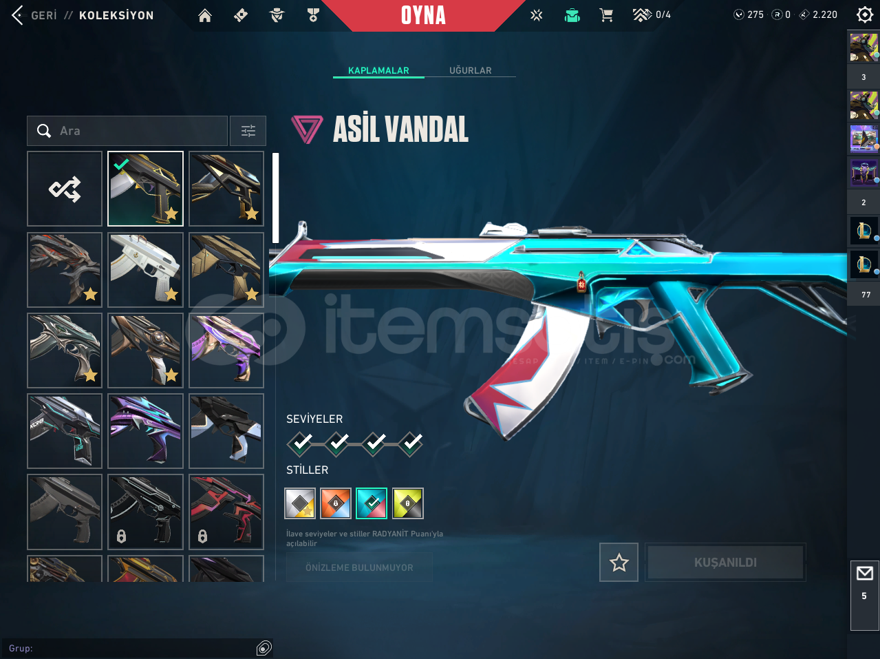 Vandal: Champions 2025,Asil,Felaketin Kalbi,Neptün,Yıldız Belası,Yitik,Zamanın Ötesi,OneTap Ora Ve 3xBatte Pass Skini Vardır Toplam 11x Skin Vardır
