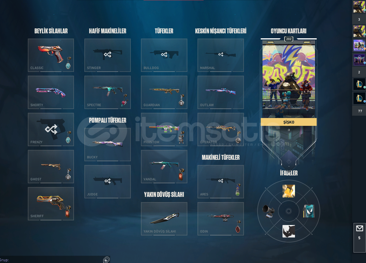 Merhabalar Hesabı Borçlar Dolasılıyla Satıyorum Tüm Karakterler Açıktır. Hesabın Rankı Plat 1Bıçak:Asil 2.0,Champions 2025,OneTap Ora Ve 1x Battle Pass Skini Vardır Toplam 4x Skin VardırGhost: Yağmacı,Ulupençe Ve 4xBattle Pass Skini Vardır Toplam 6x Skin VardırSherif: RGX,Seri Tetik,Protoko,lOneTap Ora Ve 4xBattle Pass Skini Vardır Toplam 8x Skin VardırVandal: Champions 2025,Asil...