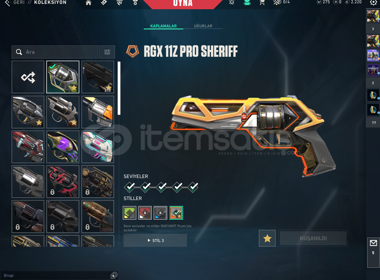 Sherif: RGX,Seri Tetik,Protoko,lOneTap Ora Ve 4xBattle Pass Skini Vardır Toplam 8x Skin Vardır