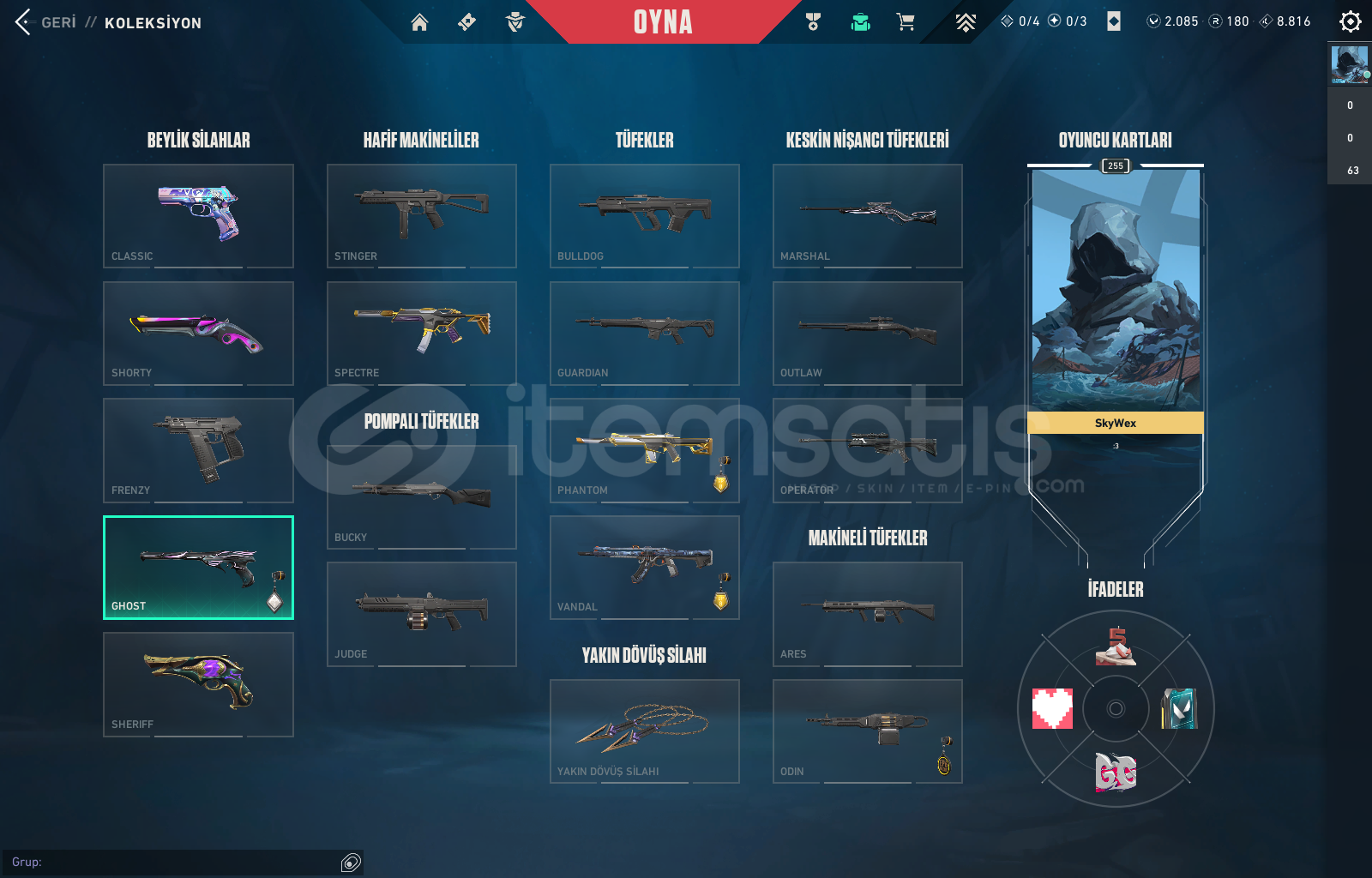 fatih ghost asil spectre asil phantım kaos vandal fatih marshal ejder op yağmacı op sihirçakı asil karambit rgx karambit kronomi bıçak +2000 vp var hesapta