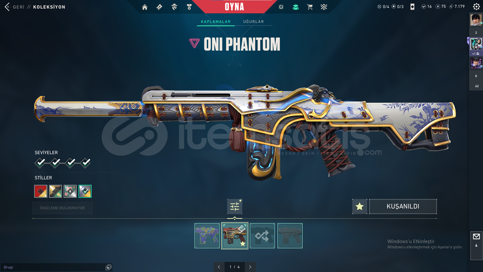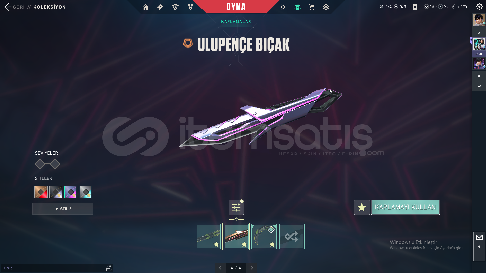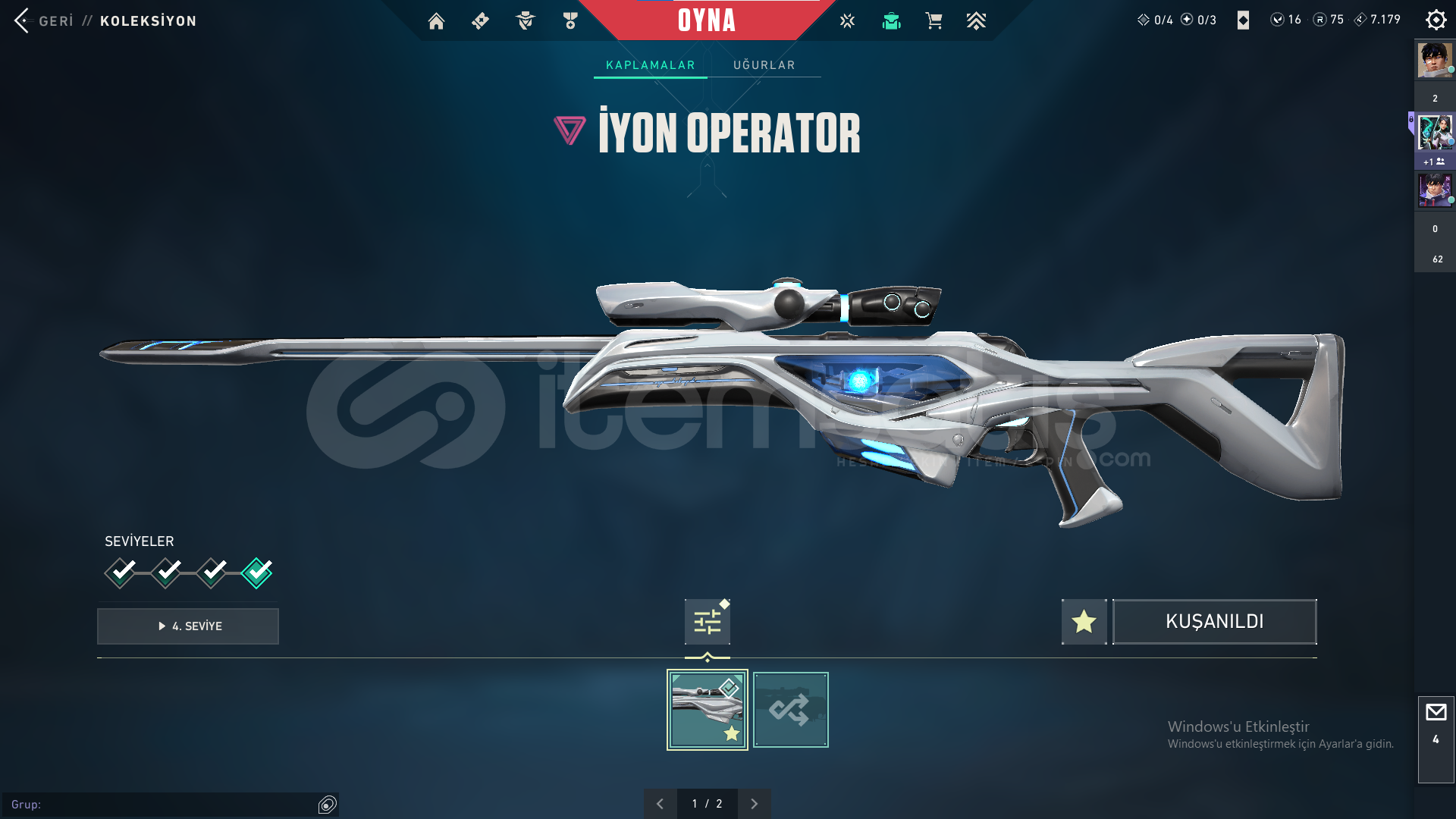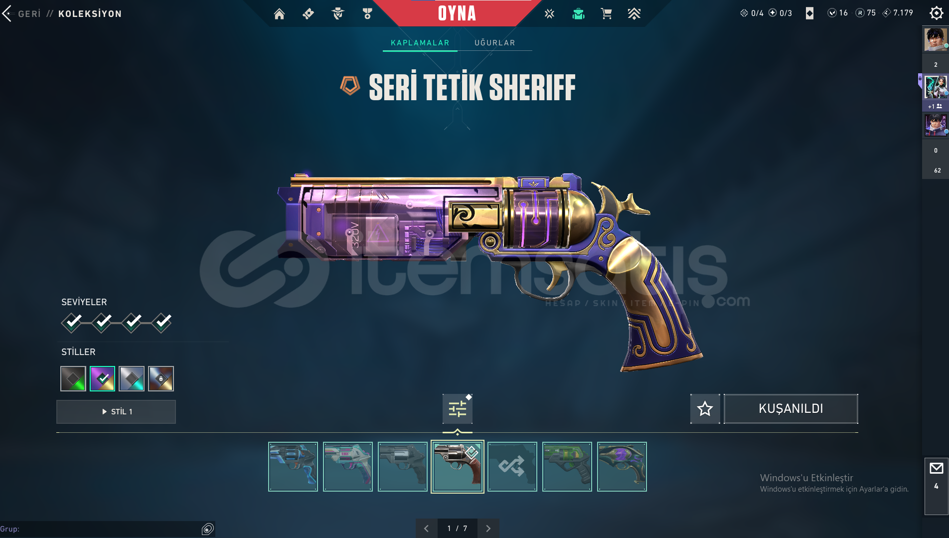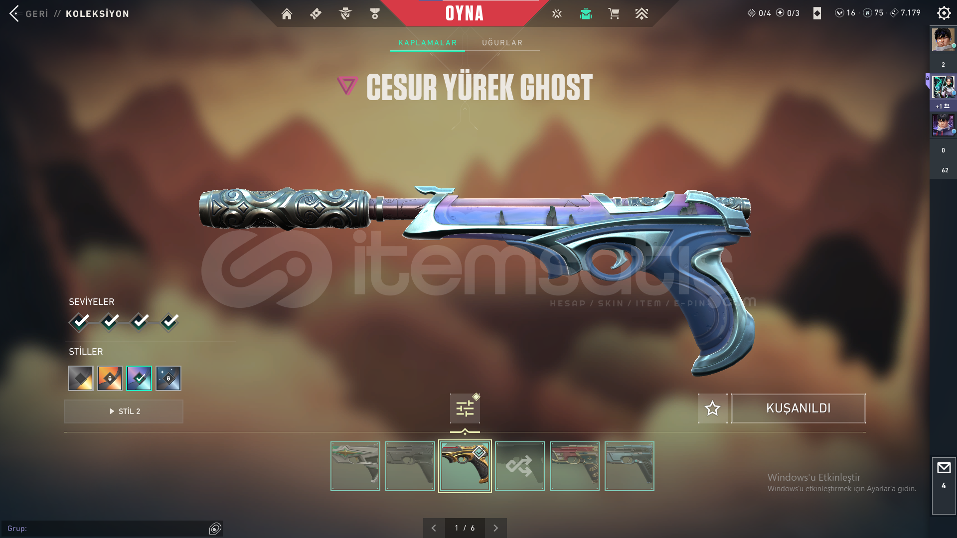 75 radyanit 16 valorant point bulunmaktadır.