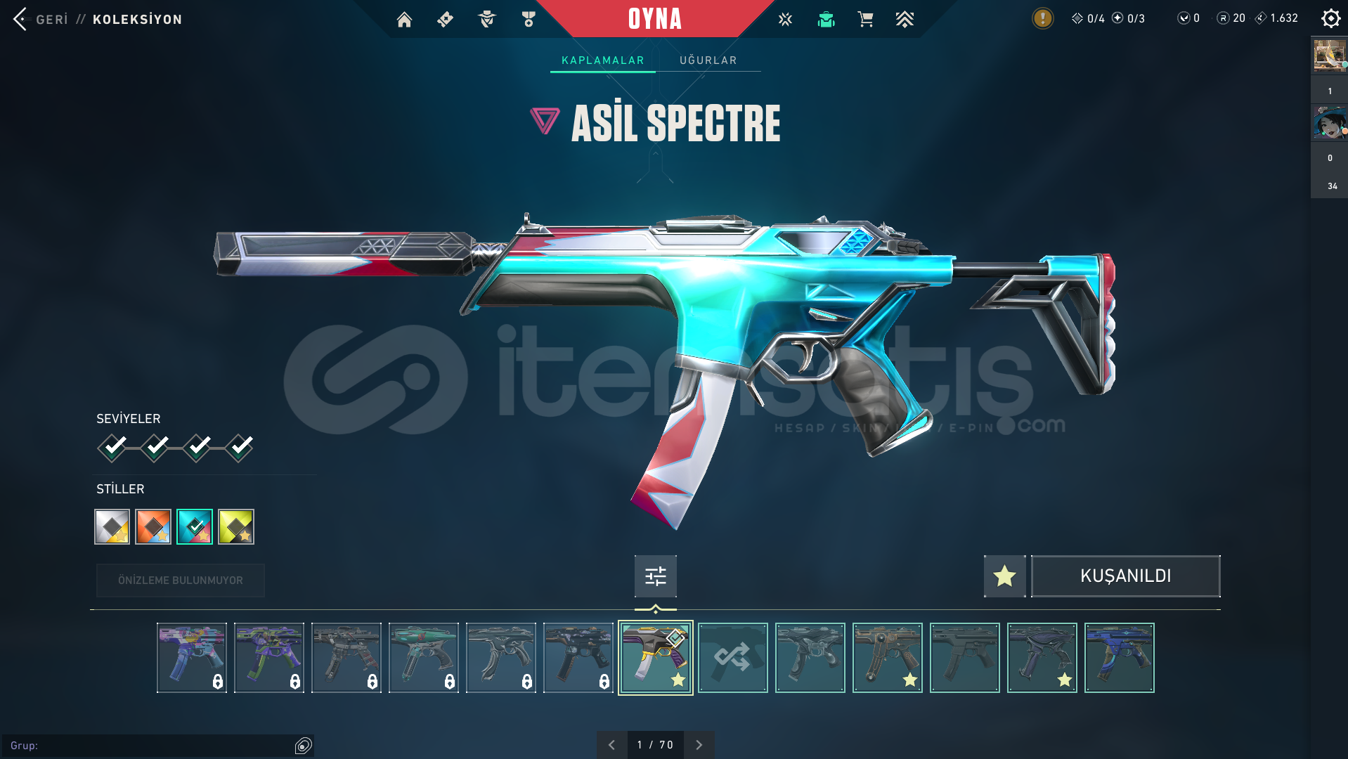 Güvenilir tek sahipli hesap Hesapta kinlerLevel } 151Bıçak } 1-RGX 11Z PRO KELEBEK 2-BIÇKIN BİTİRİCİ 3-RUH AZABI TIRPAN 4-İRİDYUM BIÇAKOperatör } 1-İYON OPERATÖR 2-YİTİK OPERATÖR 3-İRİDYUM KESİĞİ OPERATÖRVandal } 1-NEPTUN VANDAL Phantom } 1-RUH AZABI PHANTOM Guardıan } 1-RUH AZABI GUARDIANSpectre } 1-ASİL SPECTRE 2-YAĞMACI SPECTRE 3-SİHİRPUNG SPECTRE 4...