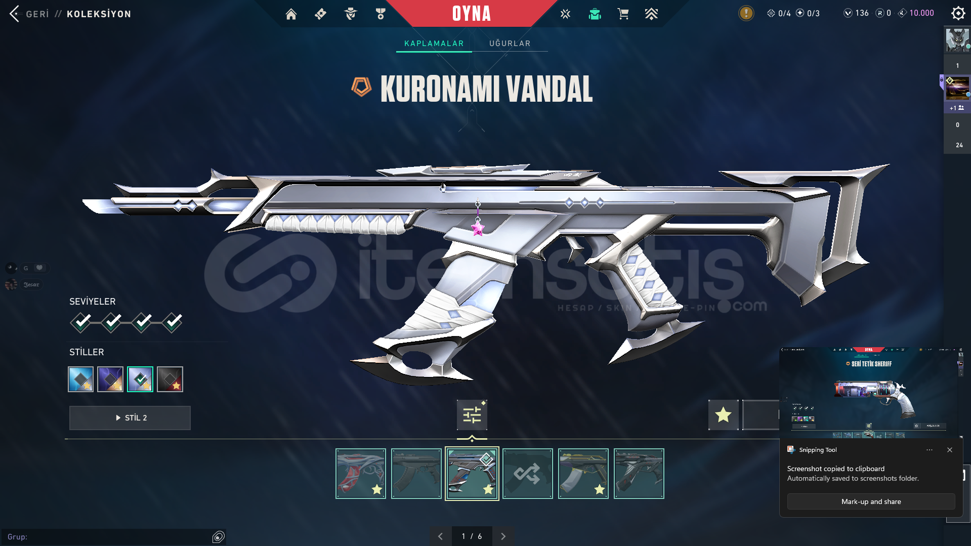 Valoranti biraktigim icin ucuza satiyorum.Hesap Totali 7.2k_____________________________ Uyari hesap max silver olmustur Seri tetik baltaOzel harekat bicak5.yil ozel bicakGosterisli bicak--------------Yagmaci GhostSeri tetik SheriffAnomali Sheriff--------------Kuronomi vandalAsil vandalGaia vandal-----------Helezon phantom----------------Cesur yurek operator