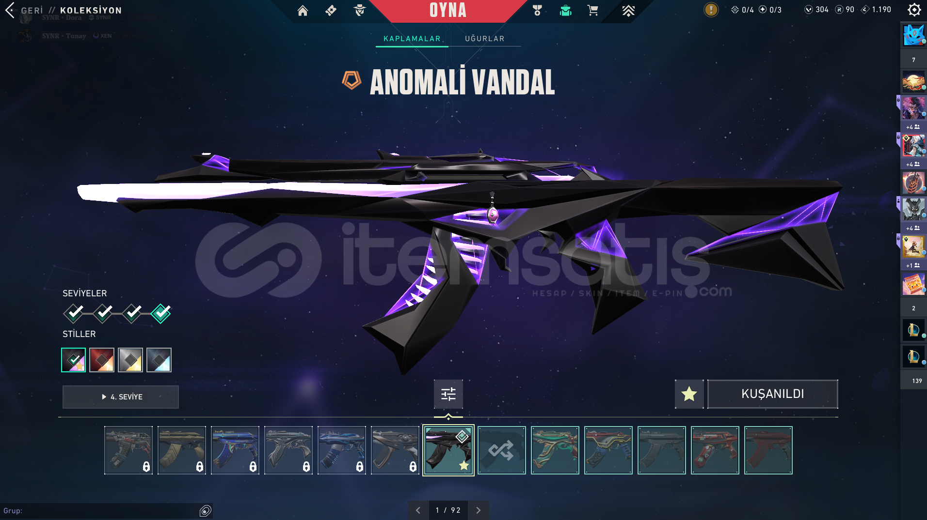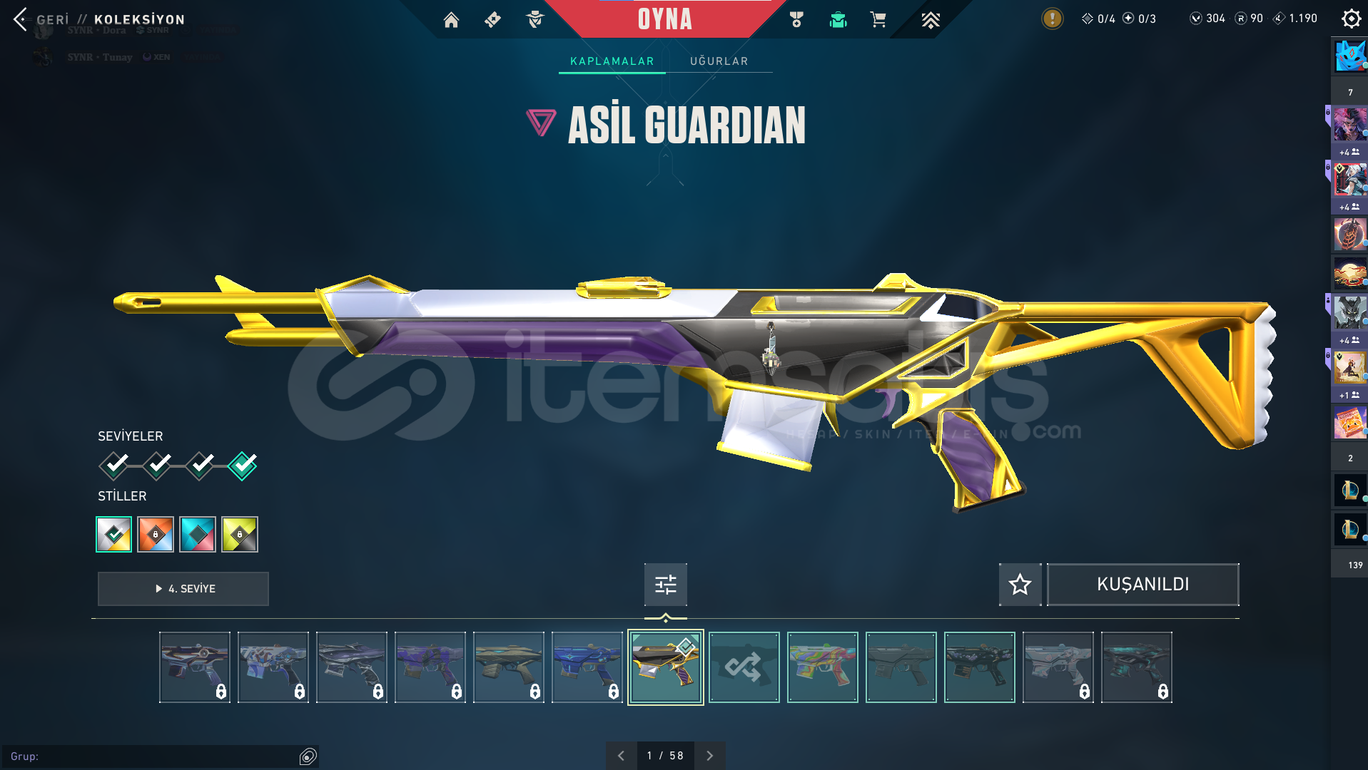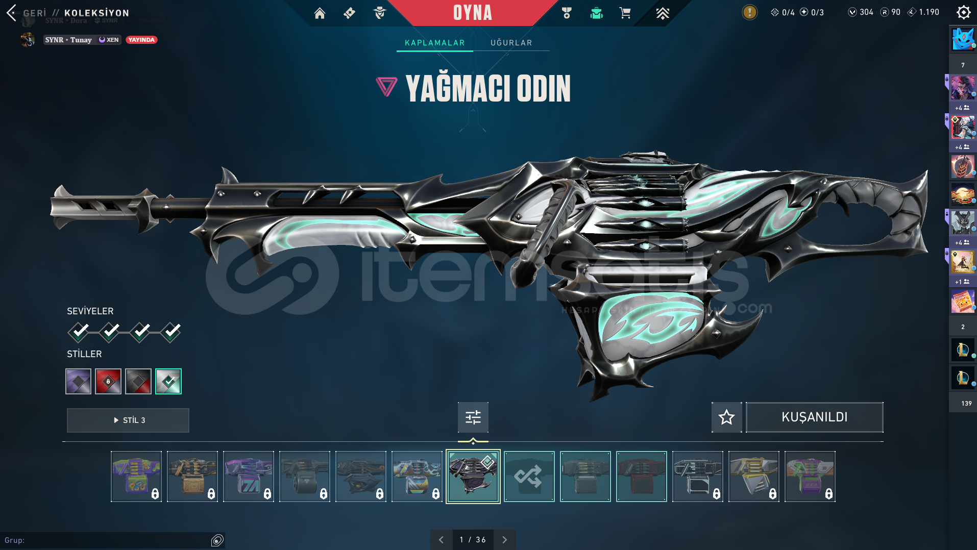 VCT X KOI CLASSİC--------------------------SERİ TETİK SHERİFF--------------------------İYON SPECTRE--------------------------ASİL GUARDİAN--------------------------AFET PHANTOM ÖZEL HAREKAT PHANTOM YAĞMACI PHANTOM --------------------------ANOMALİ VANDAL EJDERİN BUYRUĞU VANDALONI VANDAL SÜRAT CANAVARI VANDAL YAĞMACI VANDAL --------------------------YAĞMACI ODİN--------------------------UZAYLI AVCISI BIÇAĞ...