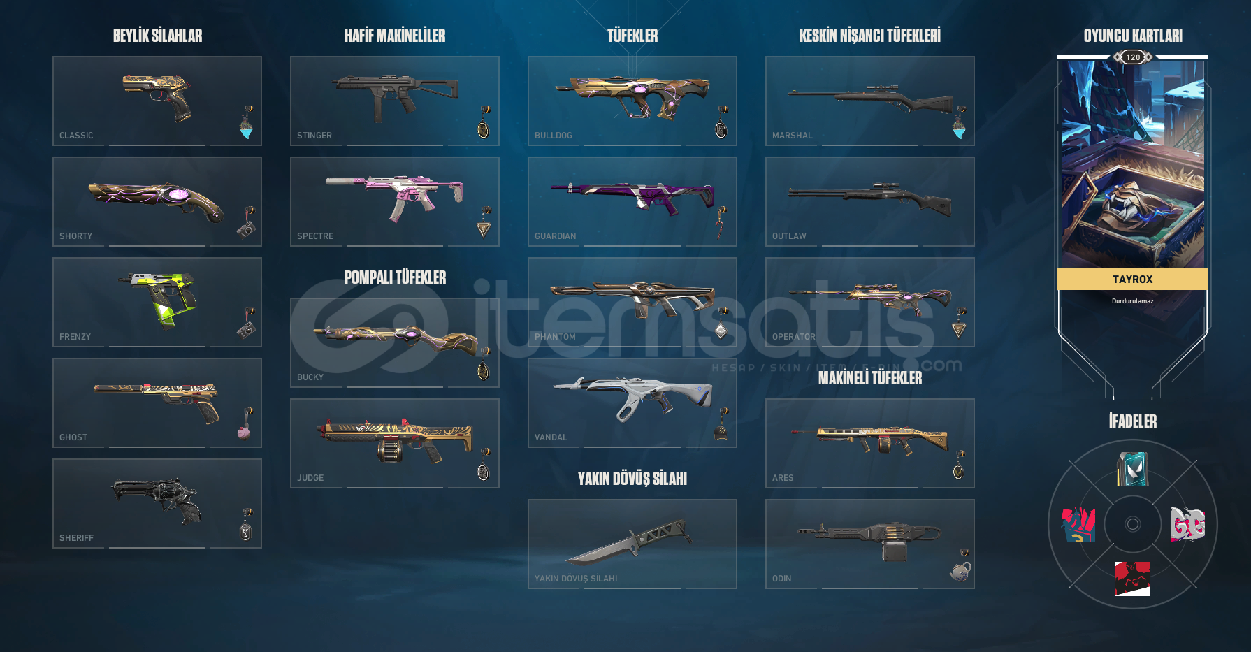 Uzaylı avcısı bıçakasıl karambitChampions 2023 Vandalİyon vandalOni phantomZamanin ötesi phantomYağmacı sherif1 tane Battle pass