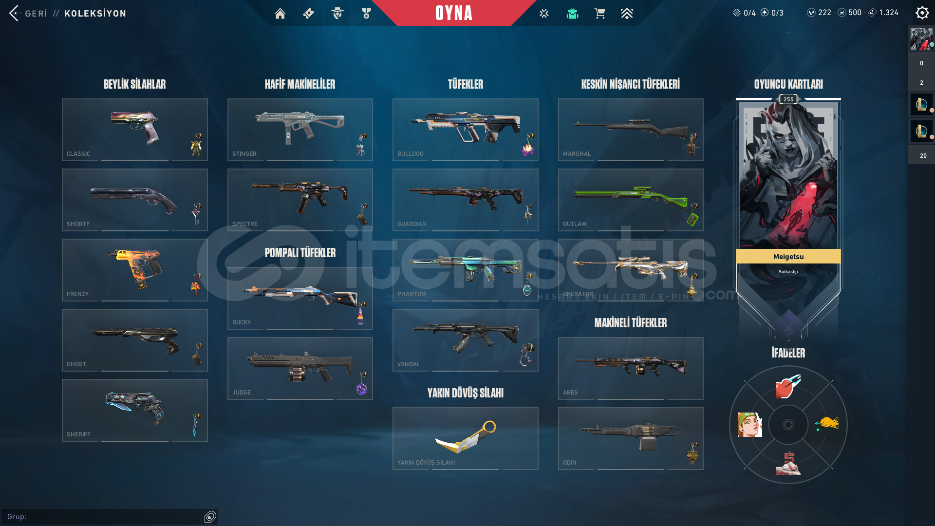 Hesap İçeriği:255 level, Peek Rank Platin1x BattlepassUlupençe GhostYıkım Elçisi SheriffAsil KarambitYağmacı VandalAsil PhantomYitik Operatör