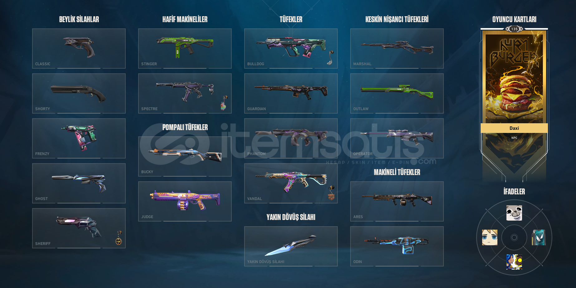 Hesapda Dereceli Pek Fazla Oynamadım Bilmiyorum da zaten sadece zevk için aldığım skinler oyunu bırakacağım için hesabı satacağım içindekiler görsellerdeki gibi 2 adet tam set var ve biraz da bişiler var Zifiri Ve Anamoli seti olarak 2 set