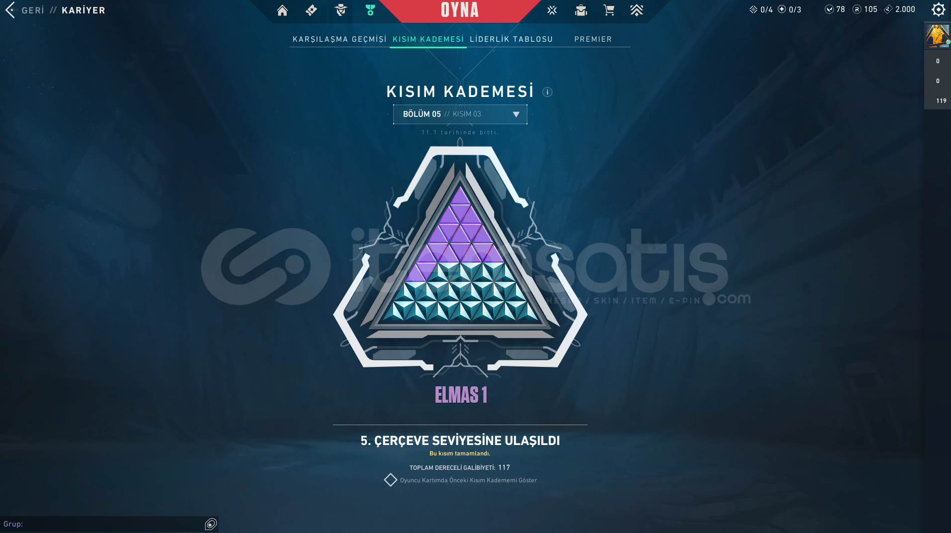 Elmas 1 kademesine kadar çıkılmıştır şuan derecesizdir