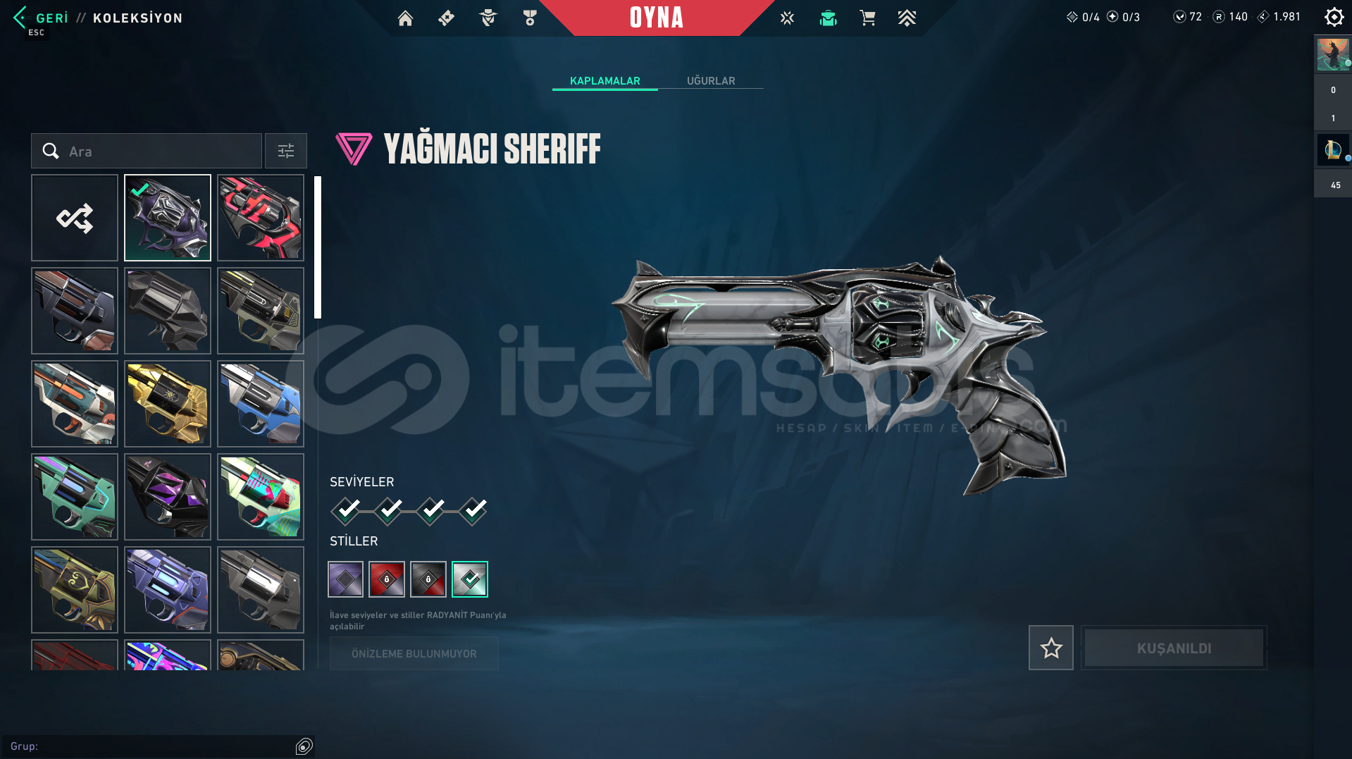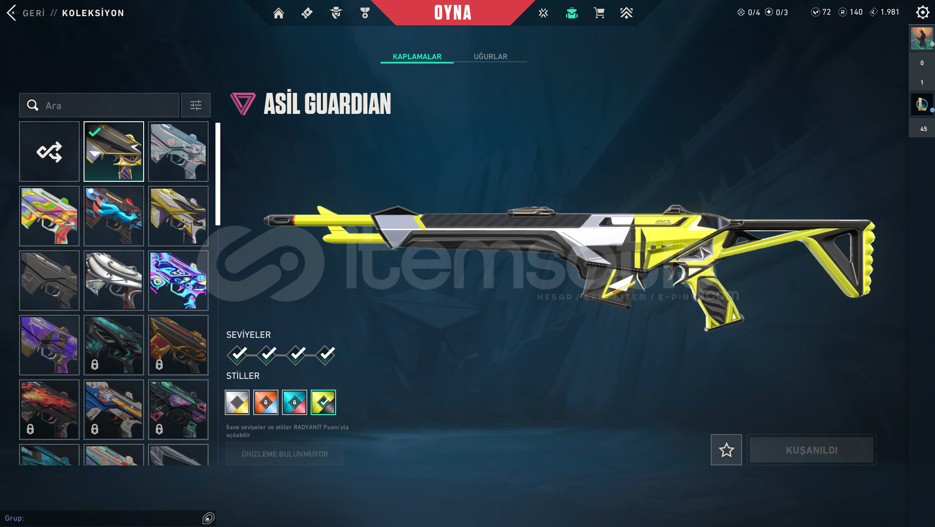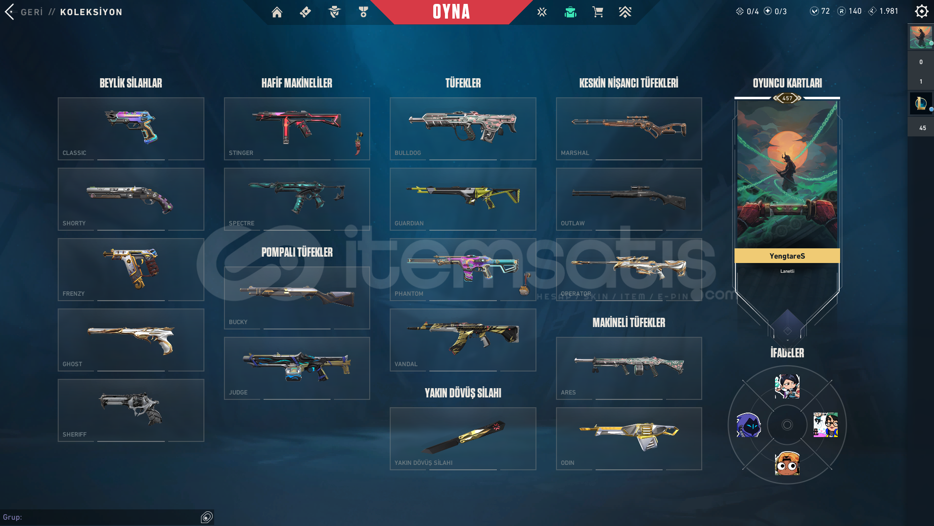VALORANT TR HESABI2021 Yılından beri kullanılan valorant hesabıMail değişimi yapılıcaktırElmas 1 kademesine kadar çıkılmıştır şuan derecesizdirHer silahta en az 7 adet skin blunmaktadırChampions 2021-2022-2023 setleri bulunmaktadır