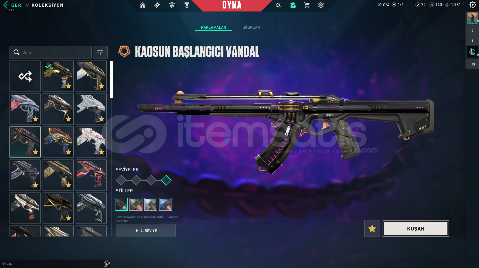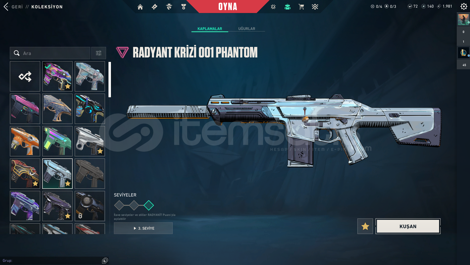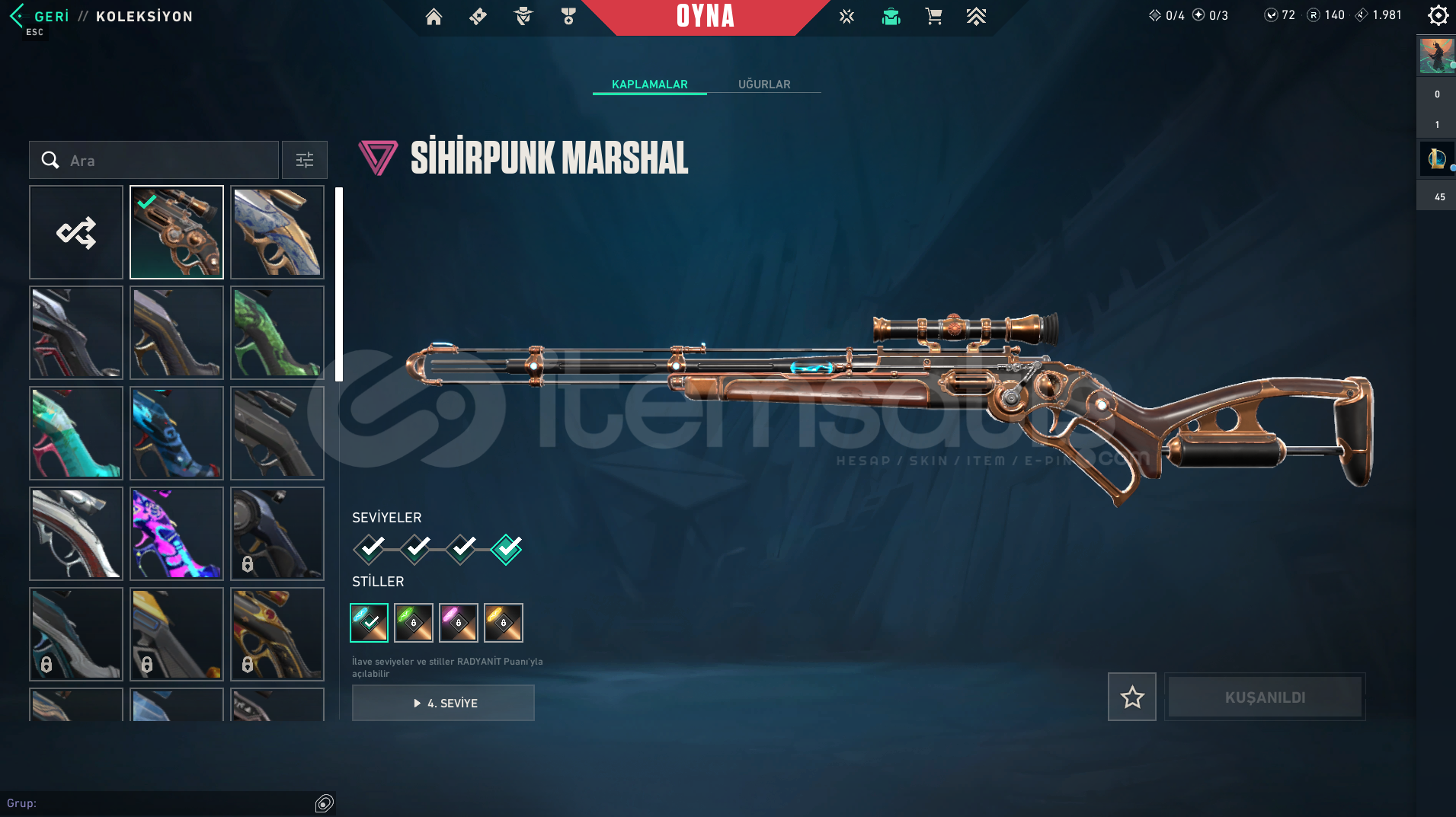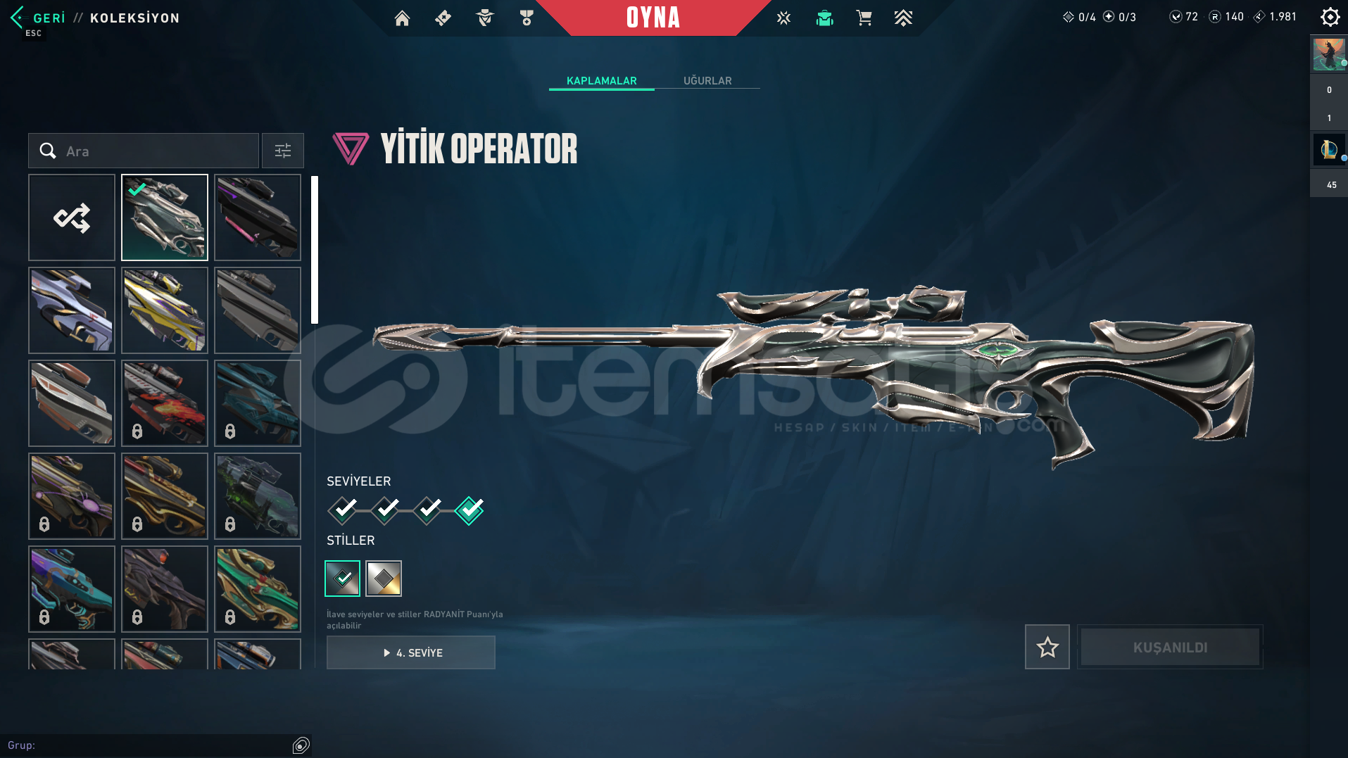 VALORANT TR HESABI2021 Yılından beri kullanılan valorant hesabıMail değişimi yapılıcaktırElmas 1 kademesine kadar çıkılmıştır şuan derecesizdirHer silahta en az 7 adet skin blunmaktadırChampions 2021-2022-2023 setleri bulunmaktadır