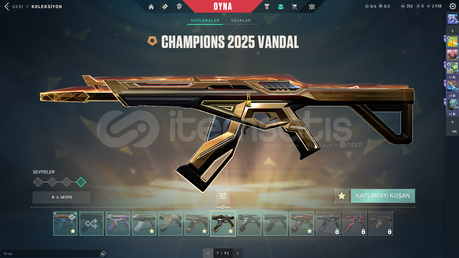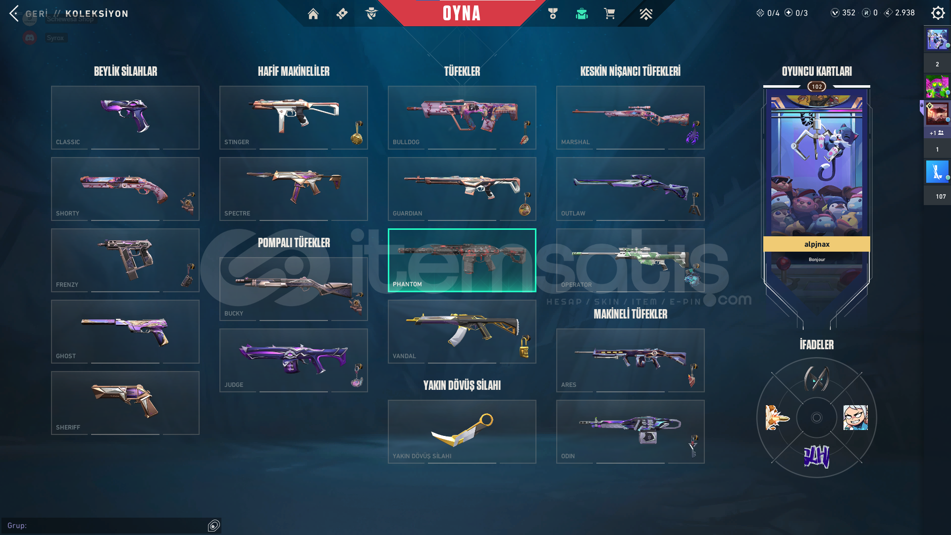 Hesap Icındekı SkinlerVandal: Asil Champions 2025 SplashX AlbeniV AtlasV Cesur Yurek Ecelın Isırığı Sürat CanavarıPhantom: Ozel Harekat Galaksi Muhafızı Kıvrık Bela Solarex SükunetBıcak: Asil Karambit Atlas Ecelin Isırığı Galaksi Muhafızı SolarexSkin Sayısı: 57 Peak: PlatinHer Silahta 1 Tane Skin Var Skinsiz Silah YokturOnemli: Geri Çekmek Soz Konusu Bıle Deg...