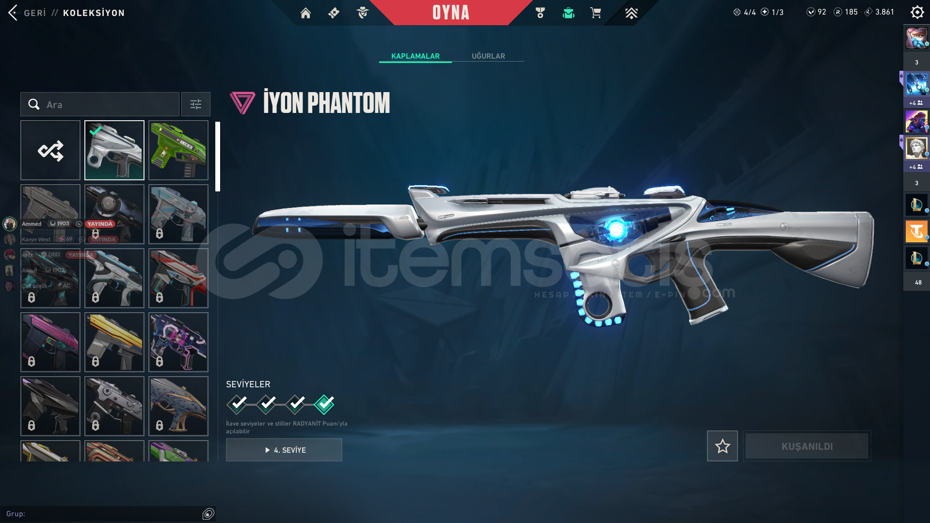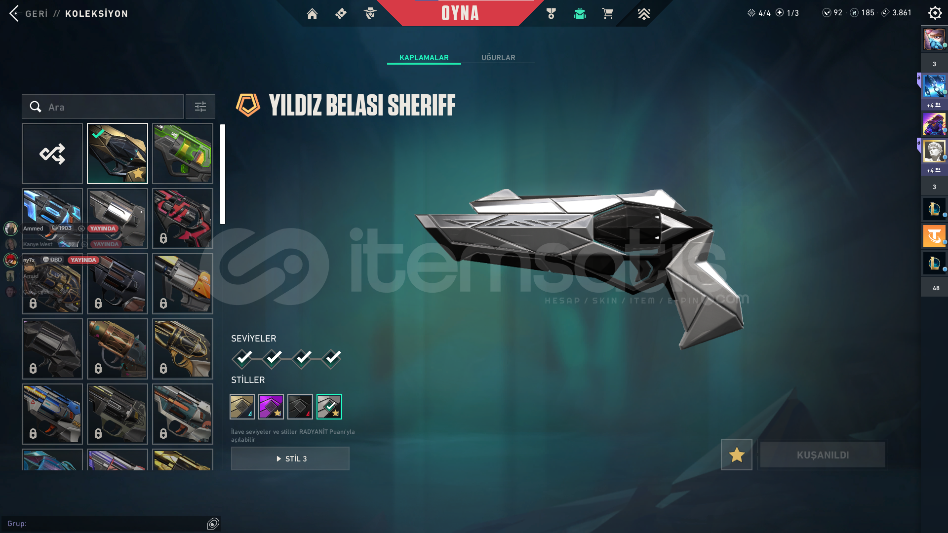 !!!!!!!BU FİYAT BU İLANIN FİYATI DEGİLDİR İNDİRİM YAPILIR VE TEKLİF VEREBİLİRSİNİZ!!!!!!!Skinler Kuronami no yaıba , Rgx kelebekYağmacı vandal , prime vandal , kaos vandalİyon phantomYıldız belası şerifDİAMOND 1 0 KPALMADAN ÖNCE BANA YAZINIZ(hesaptaki tüm herşey değişilecektir)