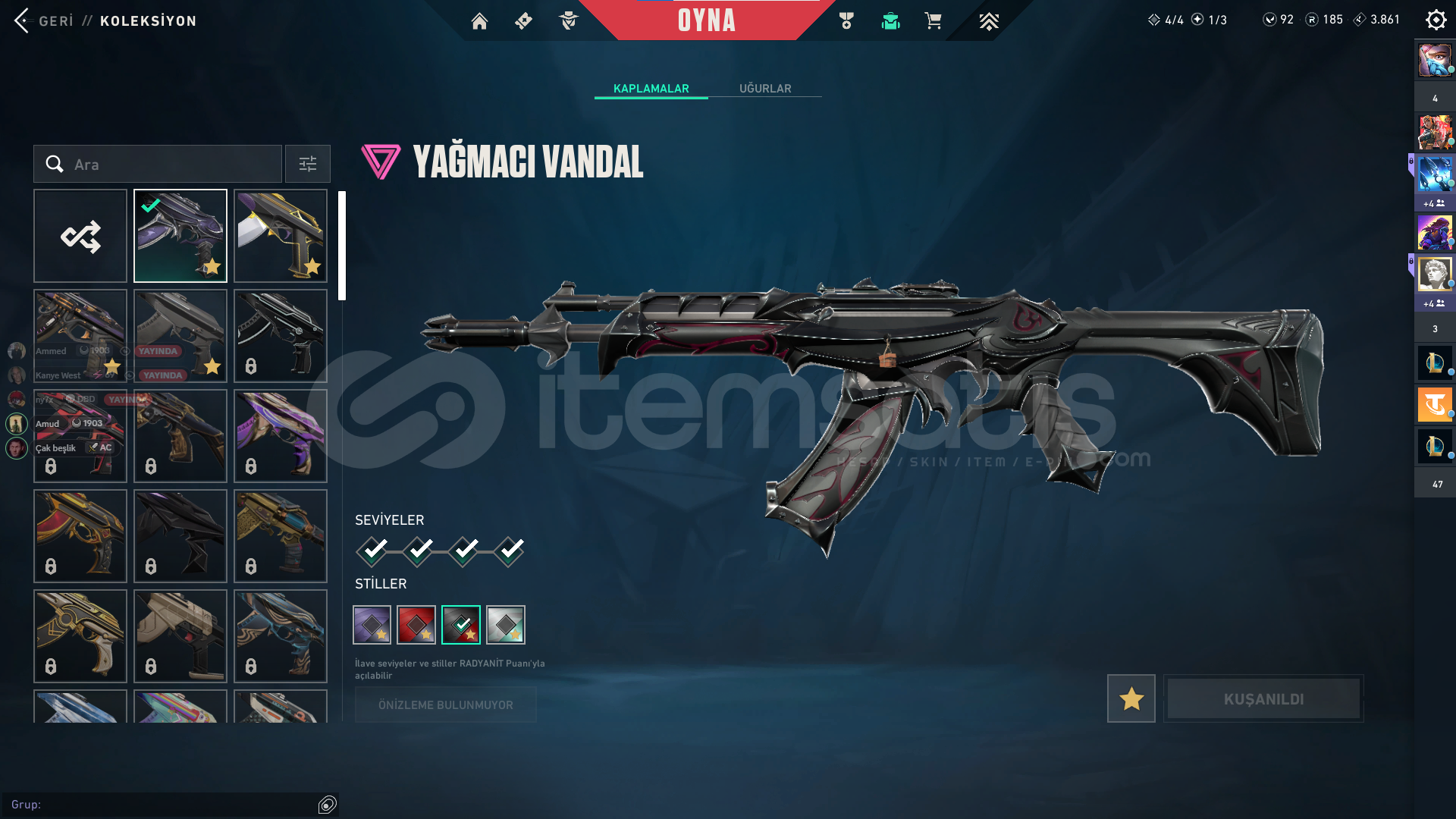 • Yağmacı vandal , prime vandal , kaos vandal