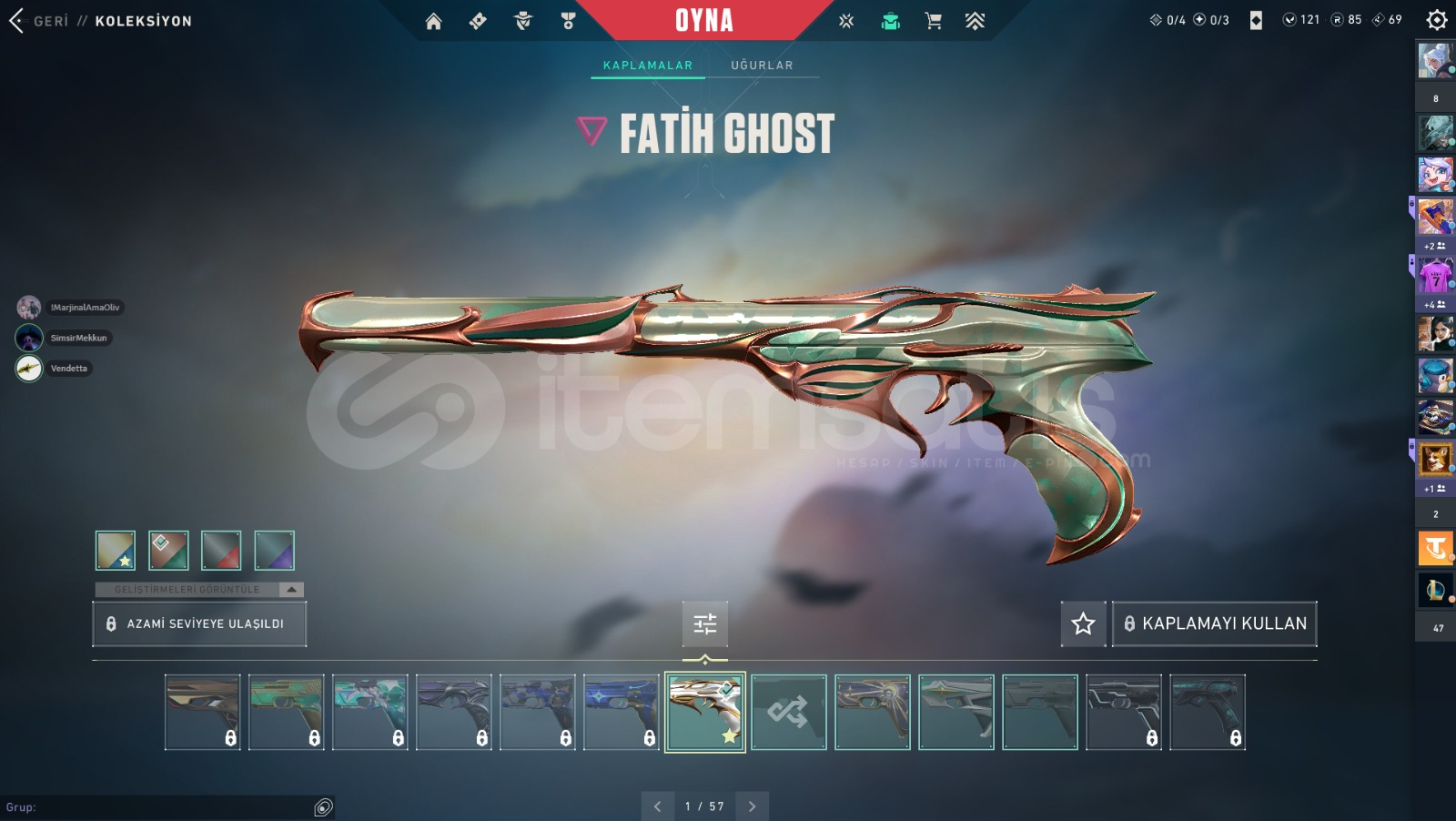 GAİ VANDAL VARYAĞMACI VANDAL VAR İKİ VANDALDA FULL RENKERLİYAĞMACI PHANTOM FULLFATİH GHOSTİYON KARAMBİTUZAYLI AVCISI BIÇOP SKINhesap gold 3 oldu