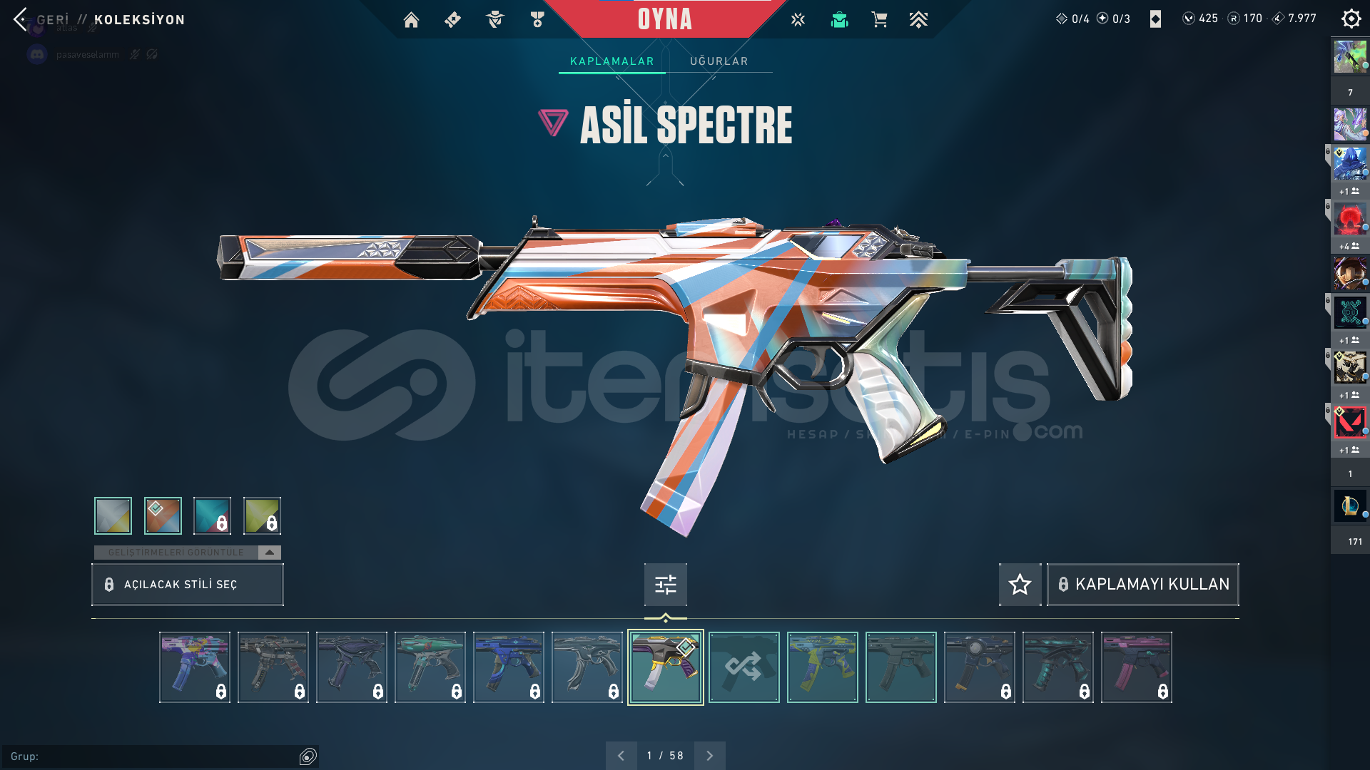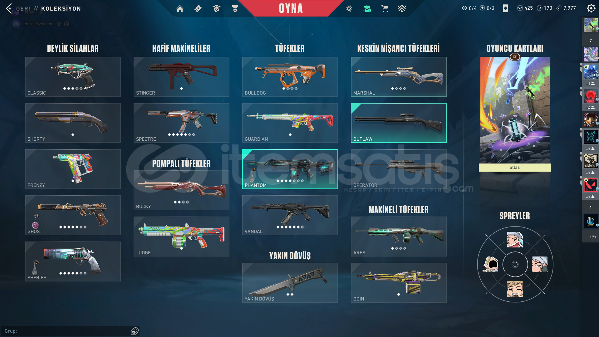 Fotograflar biraz eski ama hesap ayni Dolu Oynanmış bir hesap animasyonsuz bursuru skin varherhangi bi odeme olmadan hesaba sokamam calinma uhtimali icin ama herhangi biyerden yayin acip her yeri istenilen yerleri gosteririm Bölüm 7 Elmas 3 Hesap 425VpYerçekimsel Uranyum Nöroateşleyici Classic Sihirpunk Ghost Seri Tetik Sheriff Yağmacı Sheriff Asil Spectre Afet Phantom Yağmacı Vandal Köken Vandal Sihirpunk VandalUzaylı Avcı...