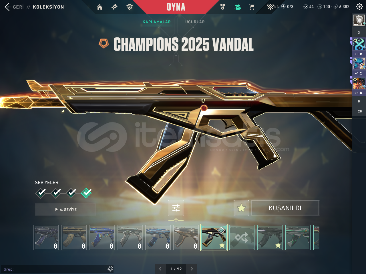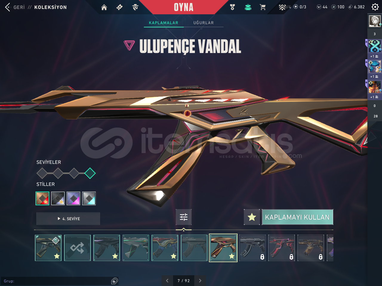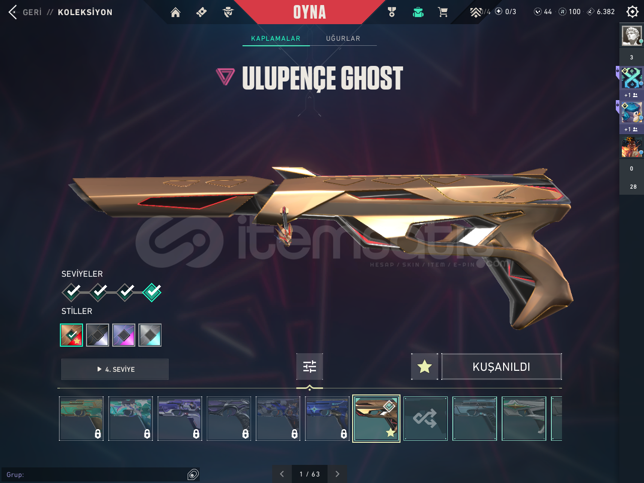 hesap nerdeyse 5 6k cıvarında ve hesapta 2 yıldır oynanıyor 185 lvl ve ıcınde 4 vandal 2 bıcak 1 battlepas 1 sherıff ghost operator 1 phantom odın spectre cogu sılahda skın vardır