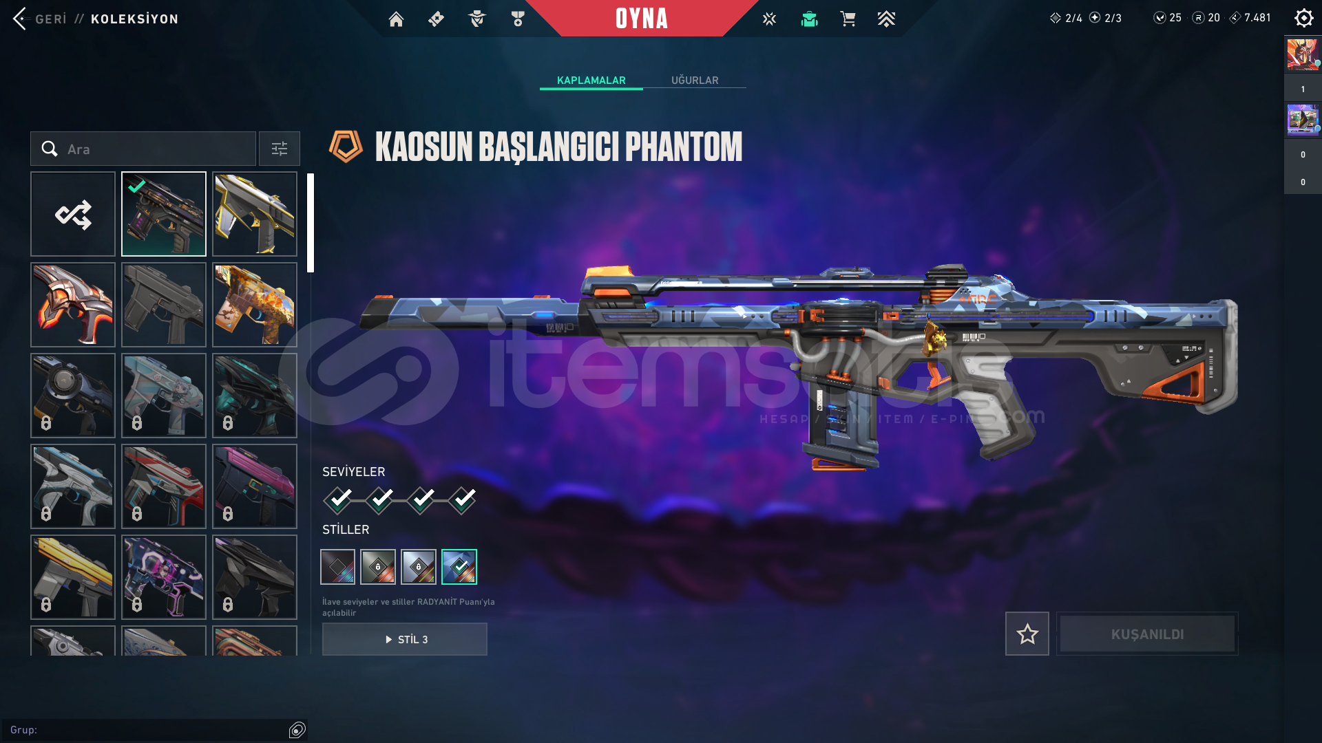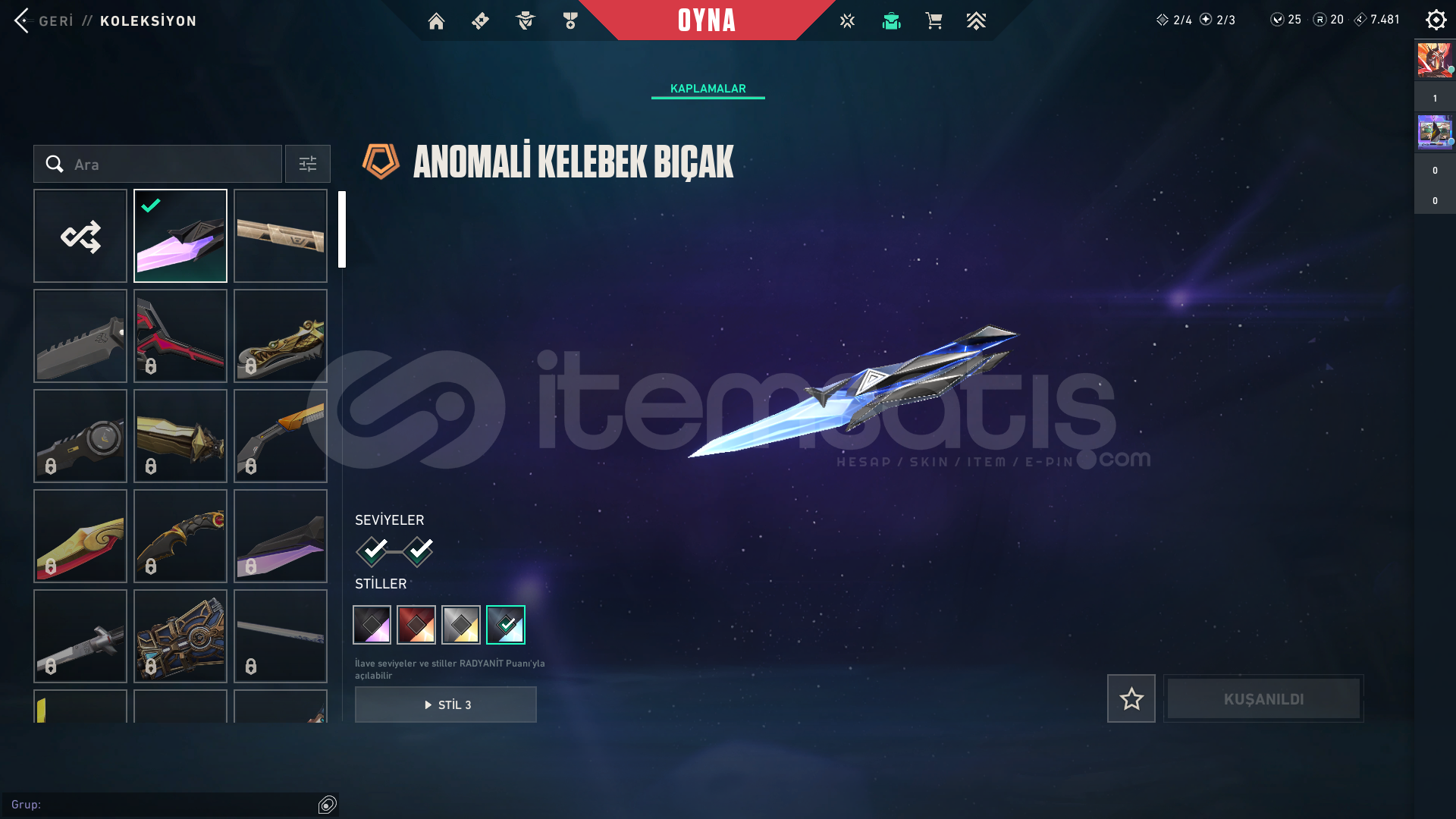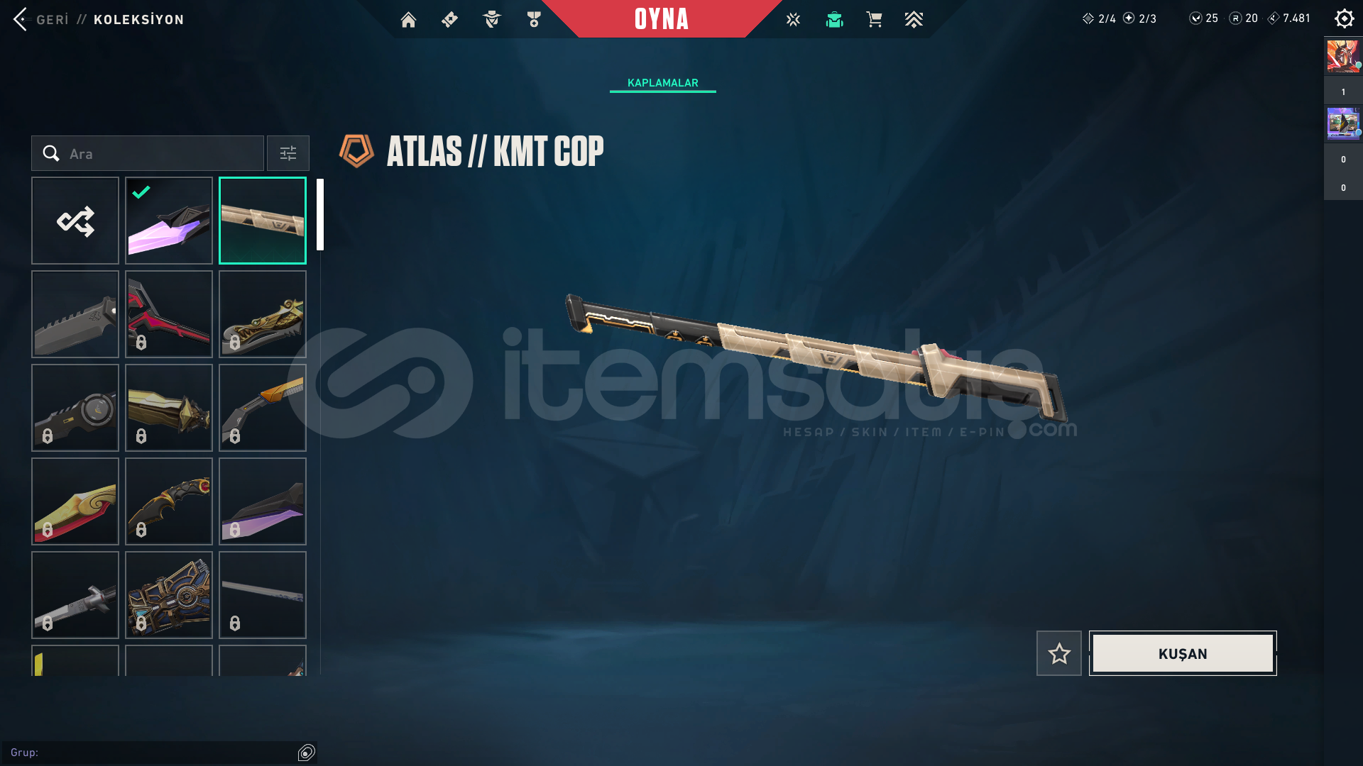 Hesap İsmini 5.12.2025 de degisebilirsinPlatin 1 HesapPlatin 2 yi gormusturHesap Seviyesi 36SilahlarEjder Ateşi Vandalİyon VandalAlbeni Vandal----------------Kaosun Baslangıcı PhantomAsil PhantomGalaksi Muhafızı Phantom----------------Asil Classic----------------Galaksi Muhafızı MarshalAtlas Outlaw----------------Anomali Kelebek BıçakAtlas Bıçak