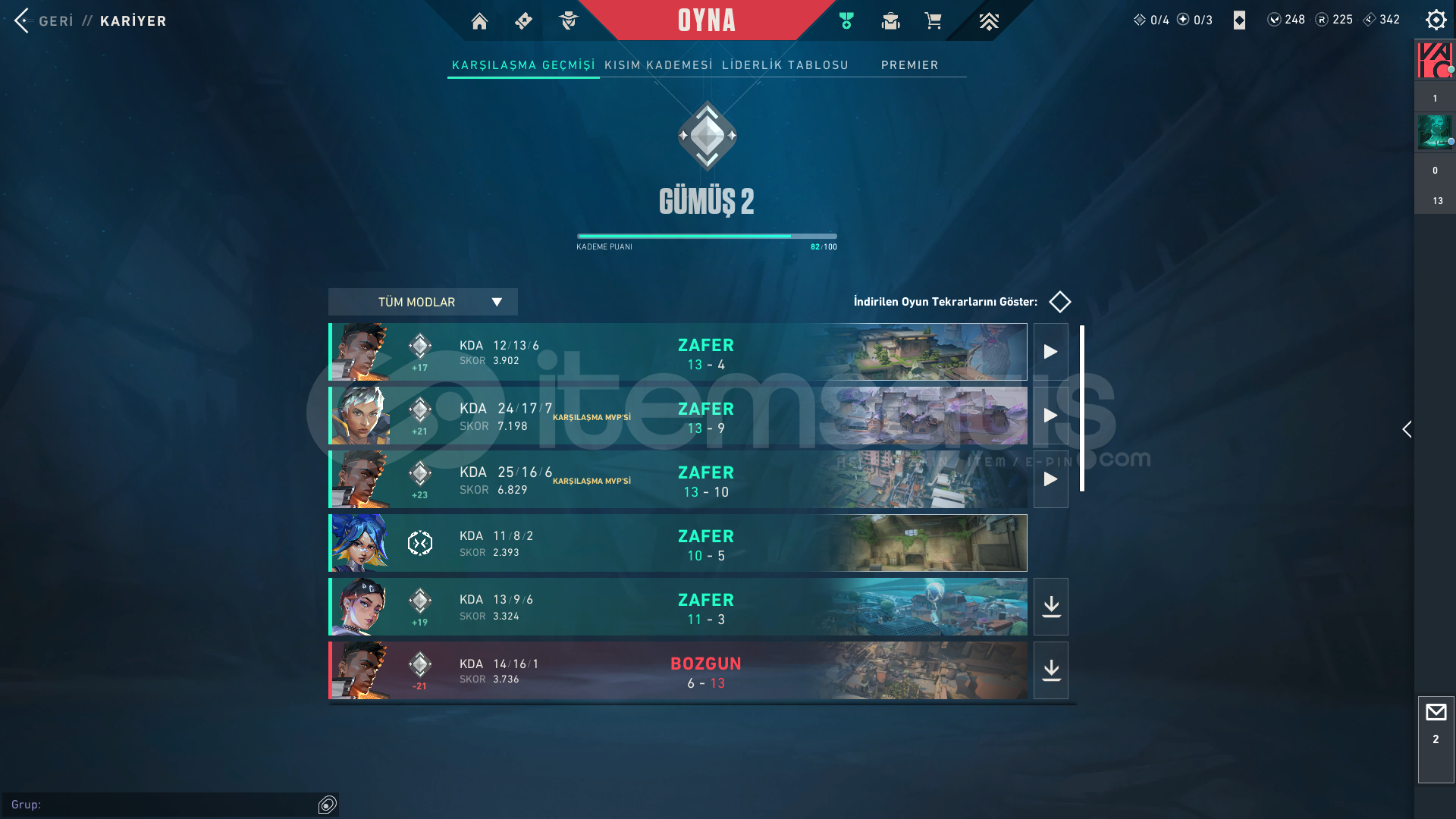 • Detaylar/skinler/rank ve ajan durumu görsellerde net şekilde yer alıyor.
