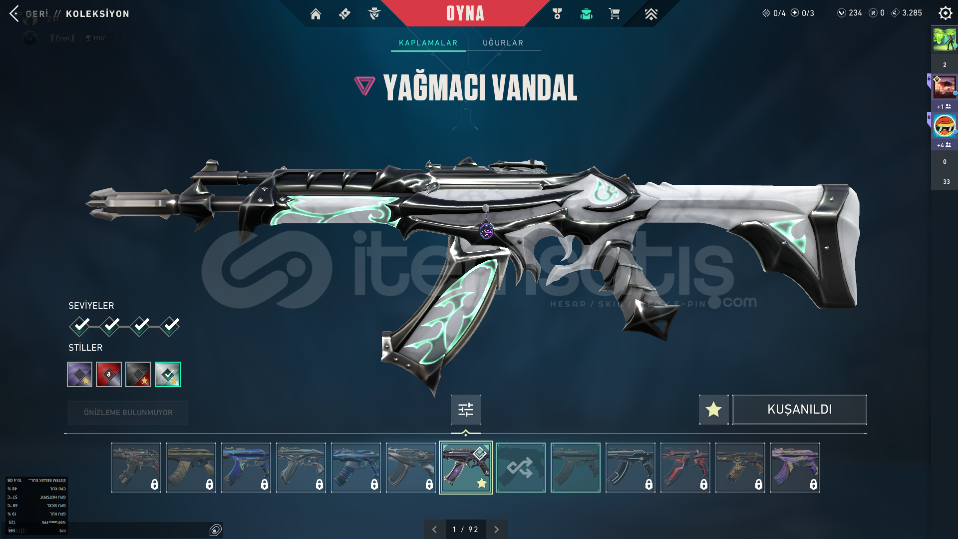 💥 VALORANT HESAP SATIŞI 💥🎯 KENDİ HESABIMDIR – RANDOM DEĞİLDİR!💠 SEVİYE: 45💎 VP: 234⚡ RADYANİT: 3.285🔫 EFSANEVİ DESENLER🔪 YAKIN DÖVÜŞ (BIÇAK) VAR!🔥 Phantom, Vandal, Sheriff, Operator, Judge, Shorty ve daha fazlası!🎴 Oyuncu Kartları, İfadeler & Battle Pass Ödülleri Açık✅ E-POSTA DEĞİŞİR✅...