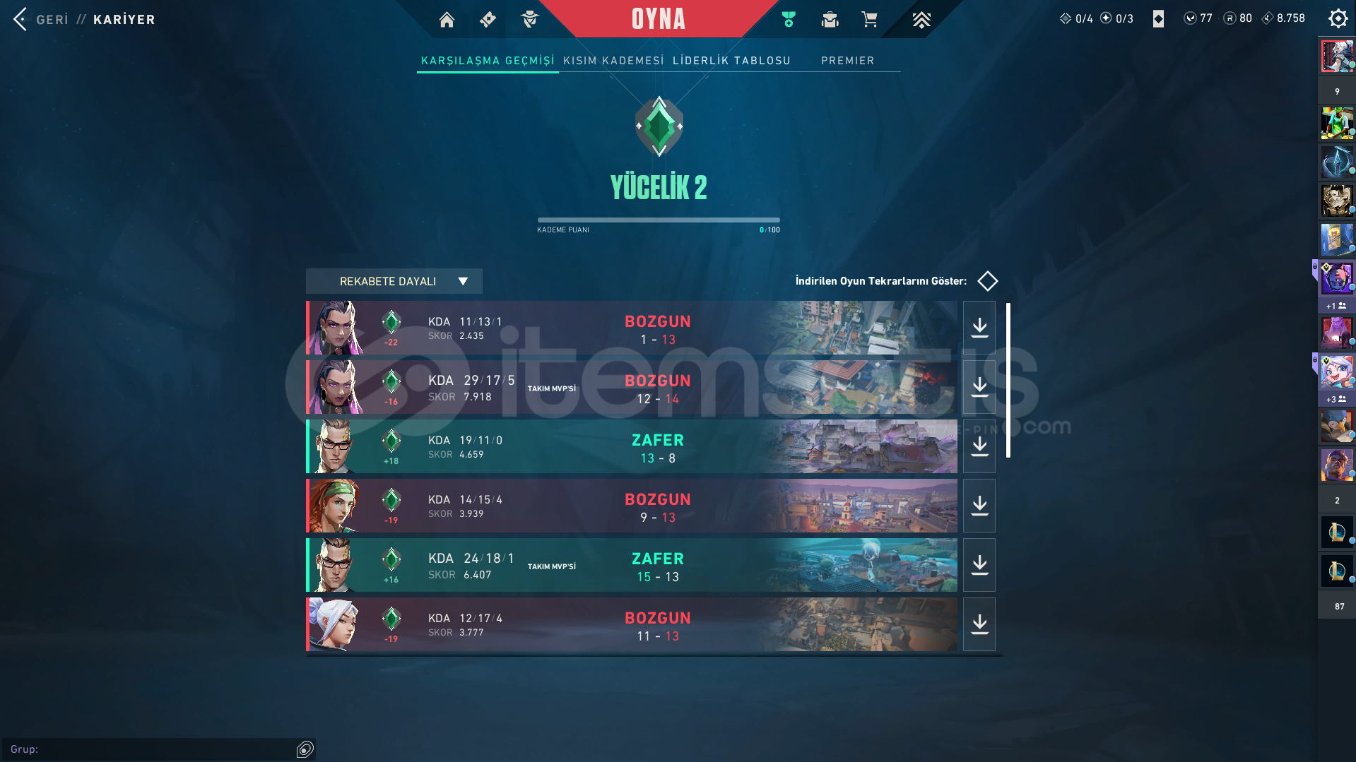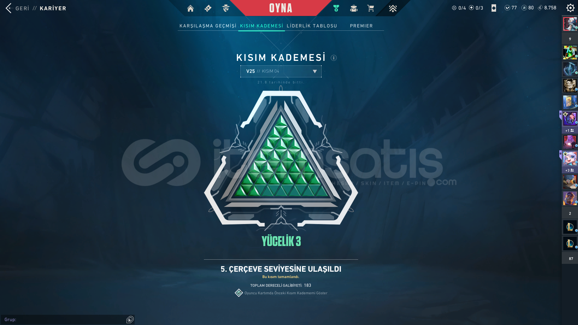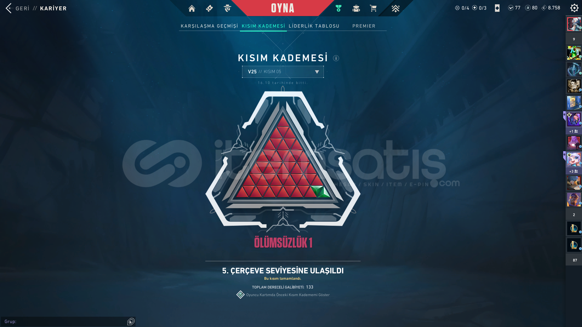 Hesap Peak rank: İmmo 1 88 rr.