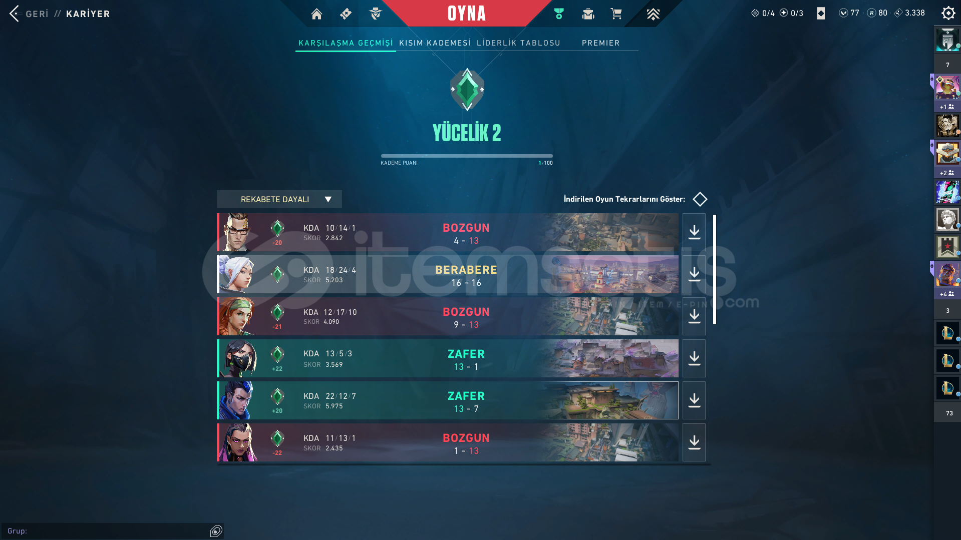 Hesabı uzun süredir aktif kullandım, artık vakit ayıramadığım için satıyorum. Boş, yeni açılmış ya da deneme hesabı değil; yüksek elo görmüş, oturmuş bir hesap.Mevcut rank: Yücelik 2 Peak: Immortal 1 MMR: 750MMR yüksek olduğu için maç kalitesi net şekilde iyi. Low elo, dengesiz maçlarla uğraşmak istemeyenler için direkt girip ...