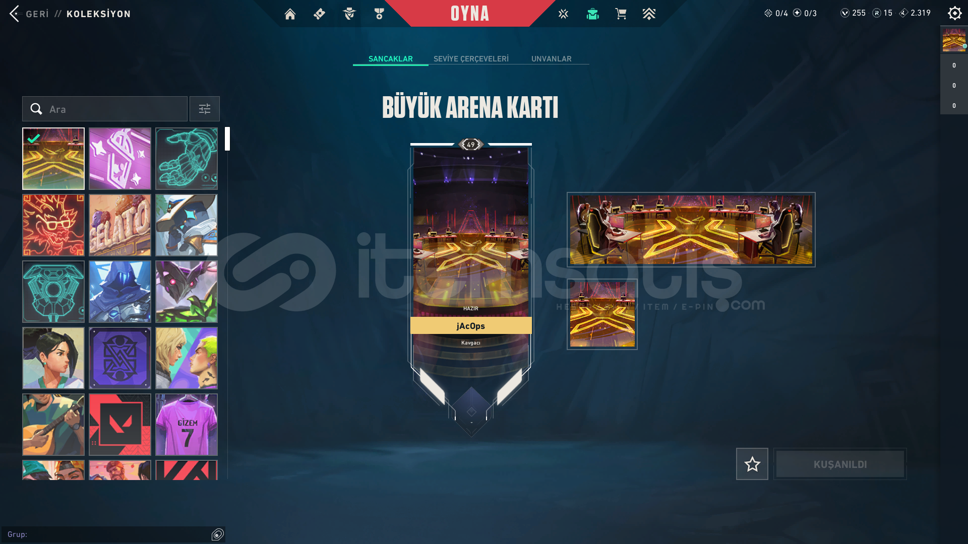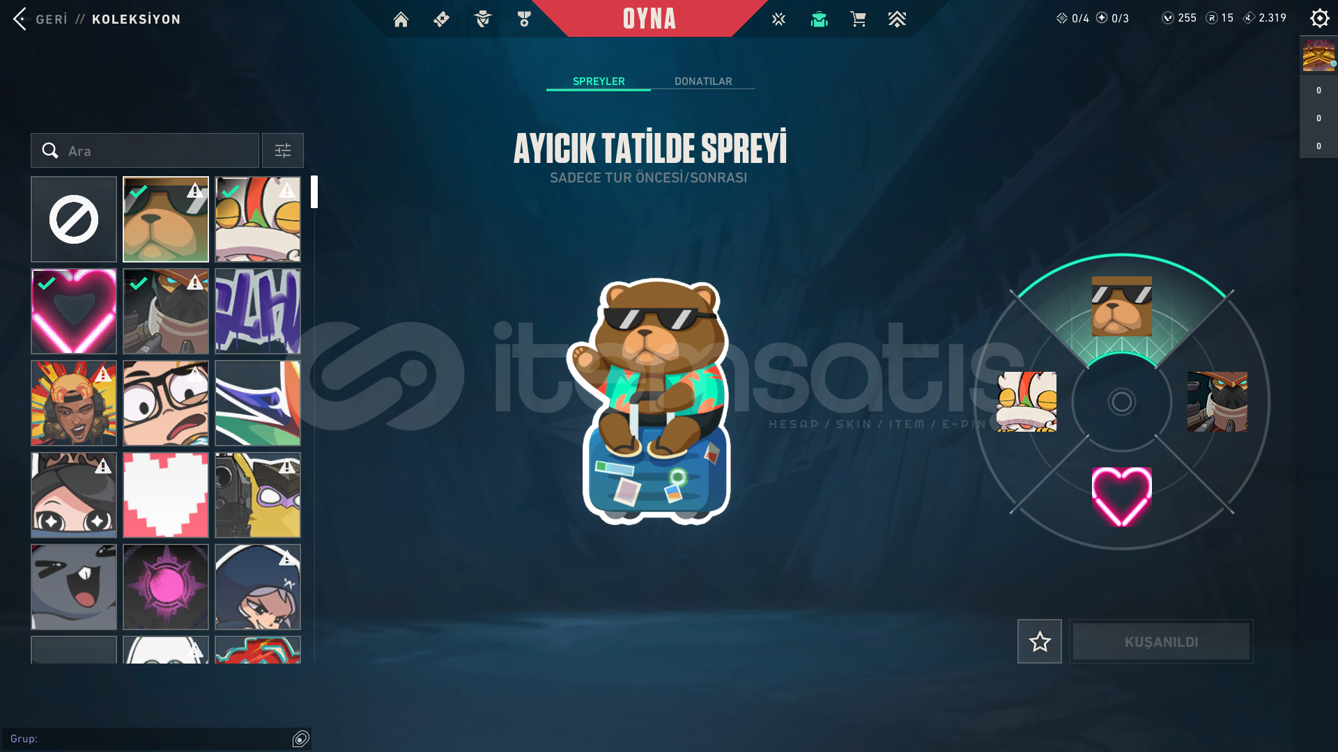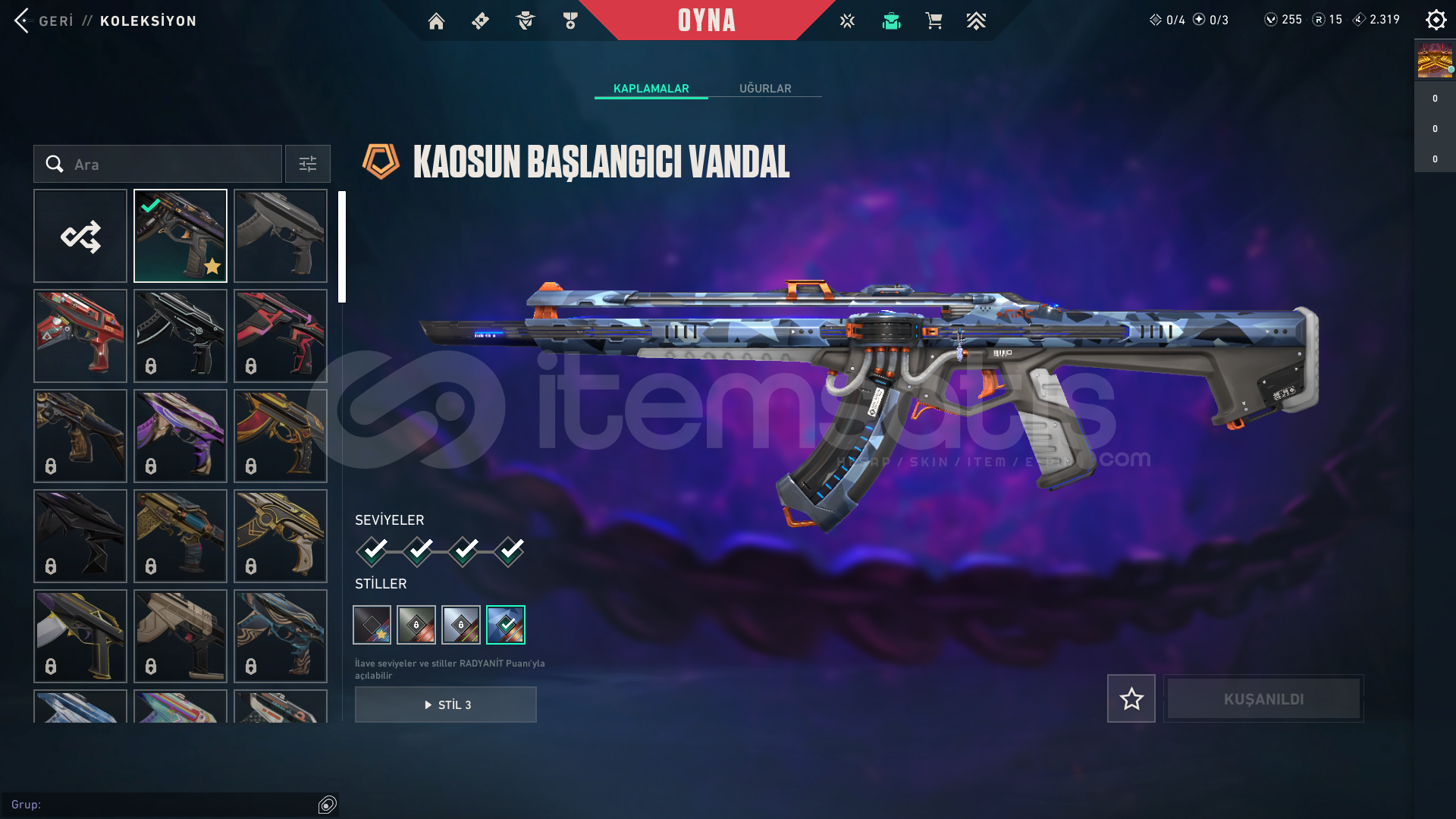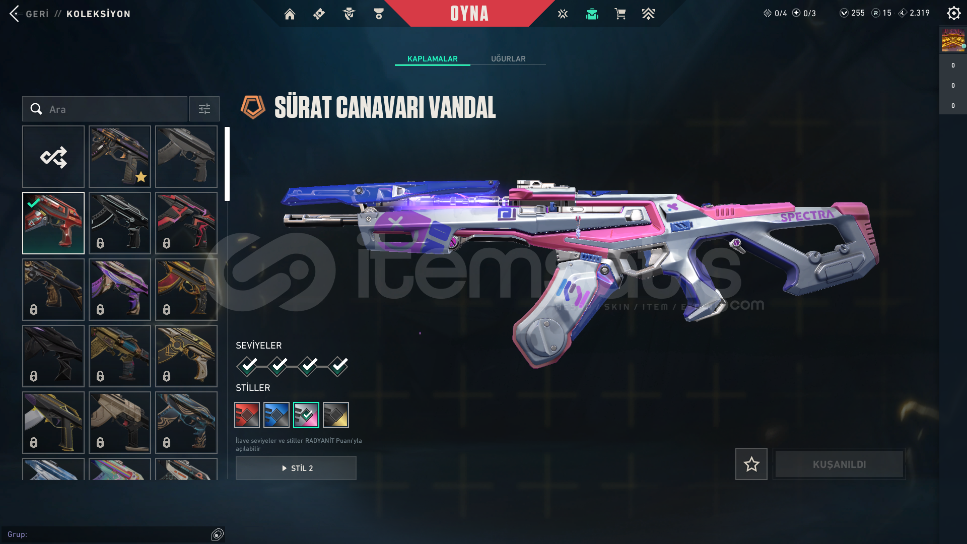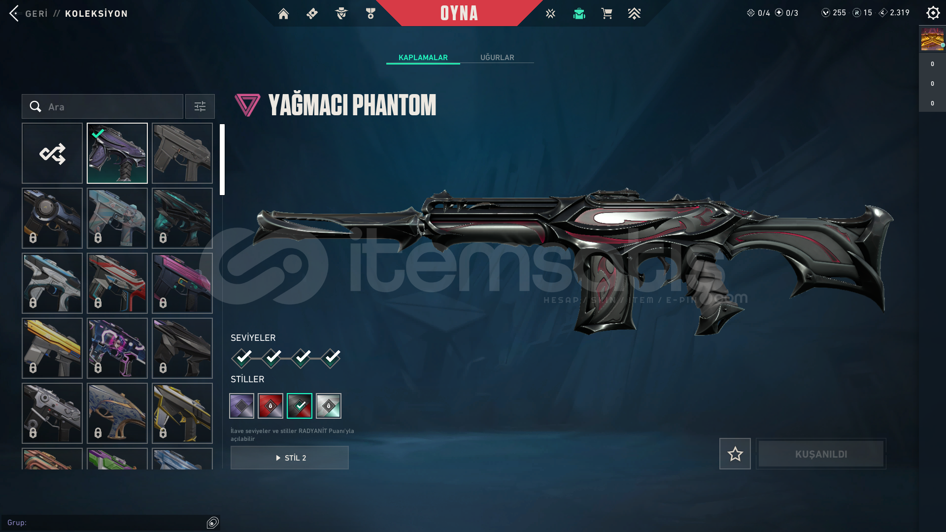 hesapta olan skinler