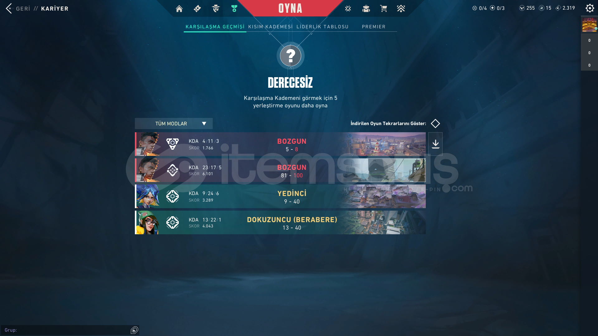 hesapta 255 vp de bulunmaktadır.