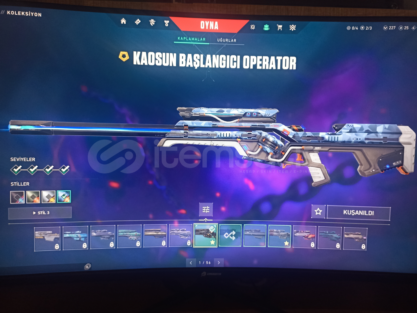 İçerikler:Vandal:2025 Champıons VandalYıldız BelasıUlupençeAnomaliCyraxFaz KoruyucuPhantom:Özel HarekatYıkım ElçisiProtokolSherrif:YağmacıOperator:KaosBıçak:Cyrax YelpazeBilgilendirme: Hesap +120 Seviye +2 BATTLEPASS bulunmaktadır.TOTAL: 32.375 ValorantPointsFotoğrafları yüklerken yaşanan bir problemden dolayı sadece bir tanesini yüklenebilmiştir ilgilenenler için &ou...