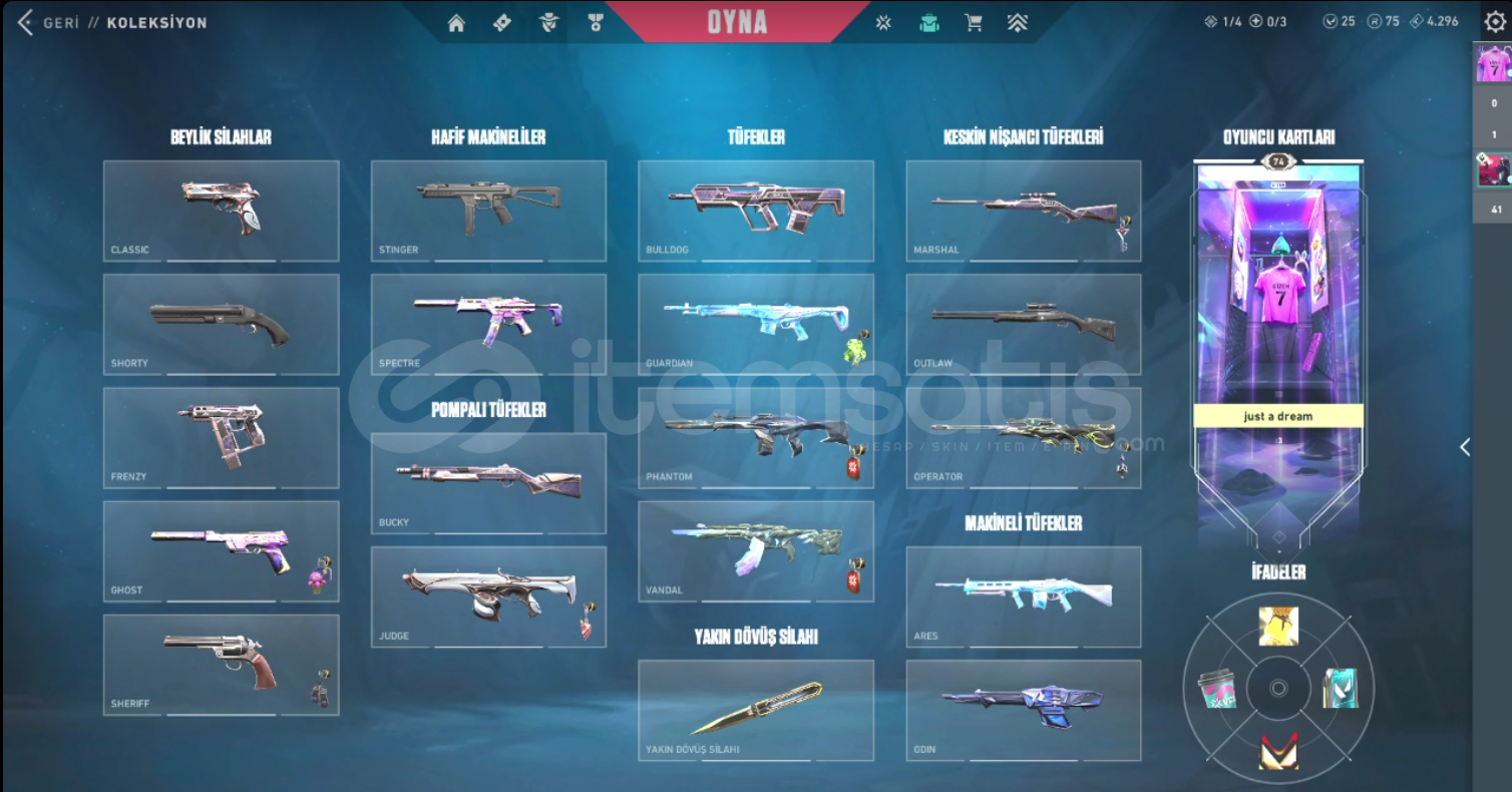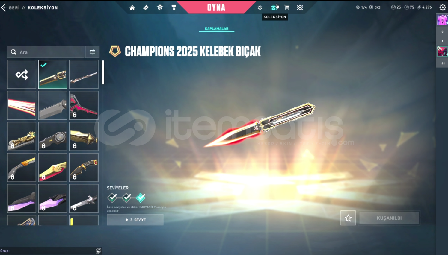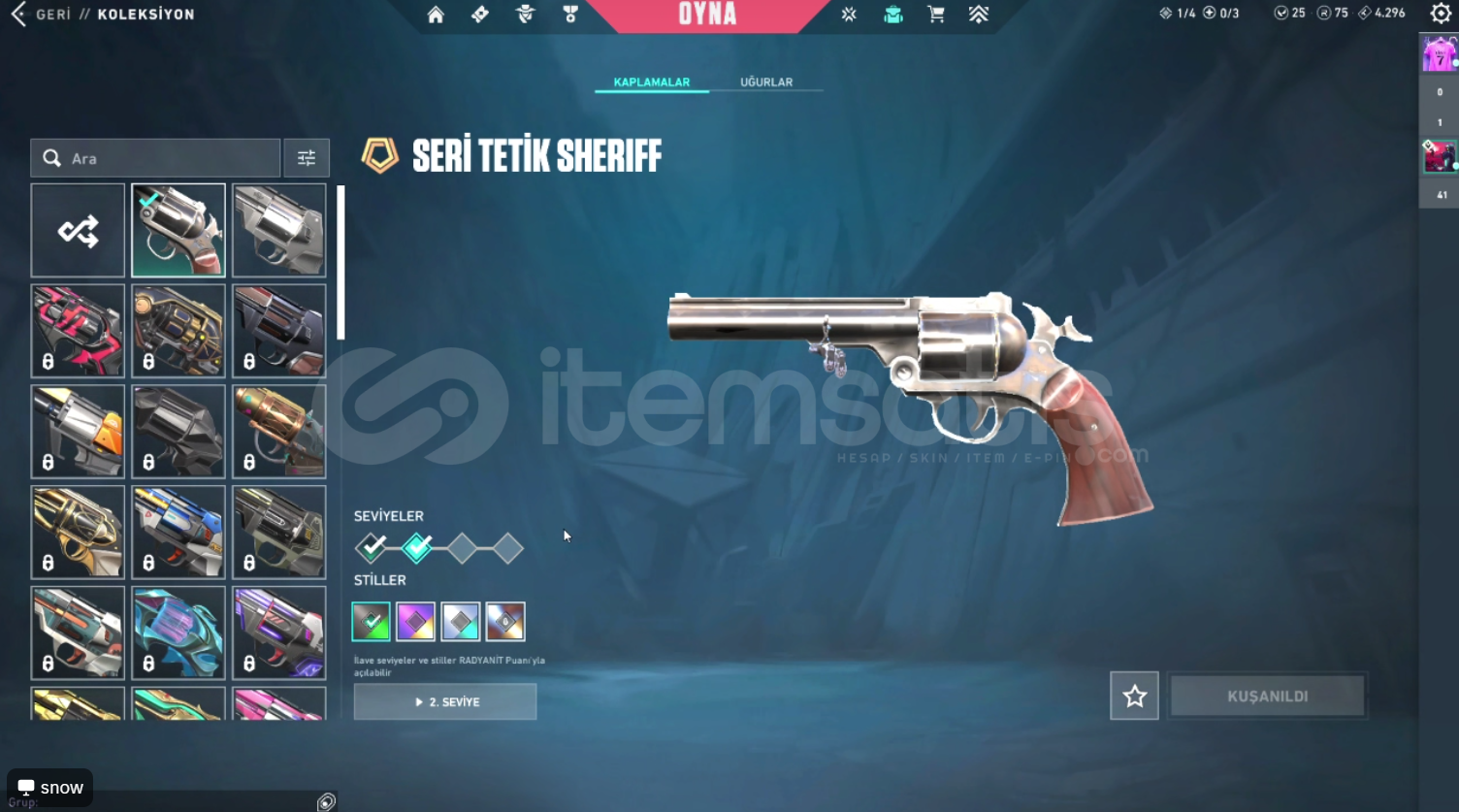 Hesabın içerisinde olanlar; Champions 2025 Seti (6640 VP) Evrim Seti ( 8700 VP) Anamoli Phantom ( 2175 VP) D omirin intikamı Vandal, (2175) ,Seri Tetik Sheriff ( 2175 VP) Bunların dışında hesapta 1 kez battlepass açılmıştır ve hesabın seviyesi 70 leveldir. Tüm karakter açıktır. Hesaptaki tüm silahlar fullenmiştir.Alım sonrası destek sağlanacak olup bir sorun olursa iade sa...
