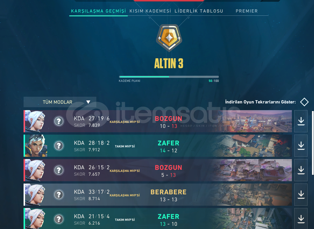 hesabın şuan aktif rankı gold 3 tür alıcak kişiye şimdiden hayırlı olsun.