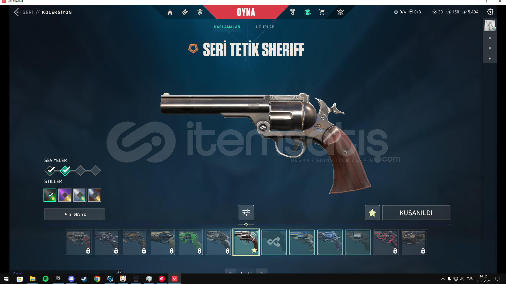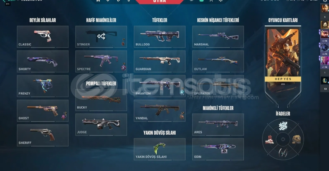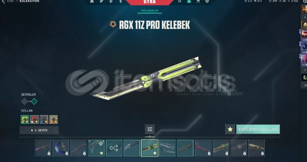 Hesap içindekiler -vct karambit -rgx kelebek -ışık muhafızı vandal -kaos vandal -seri tetik sheriff -gaia bucky -2 adet tamamlanmış battle pass2 battle pass olmak üzere toplam 4 bıçak mevcuttur