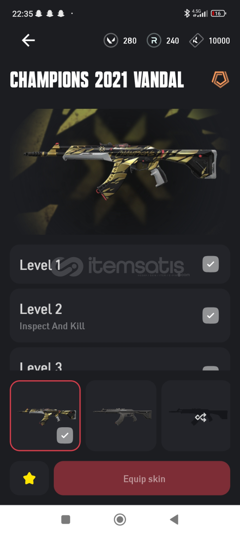 Hesap bana aittir başkası kullanmamıştır artık oyun oynamadığım için hesabı satıyorum mail değişimi yapılır içinde oyuna tekrar gelmicek olan setler vardır (arcane sheriff,champions 2021,vct bayonet) gibi başka sorulanız olursa sorabilirsiniz alıcısına hayırlı olsunSkinler:Asil Odin Yıldız belası,yitik,tigris operatörNeo frontier MarshallVandal: Cha...
