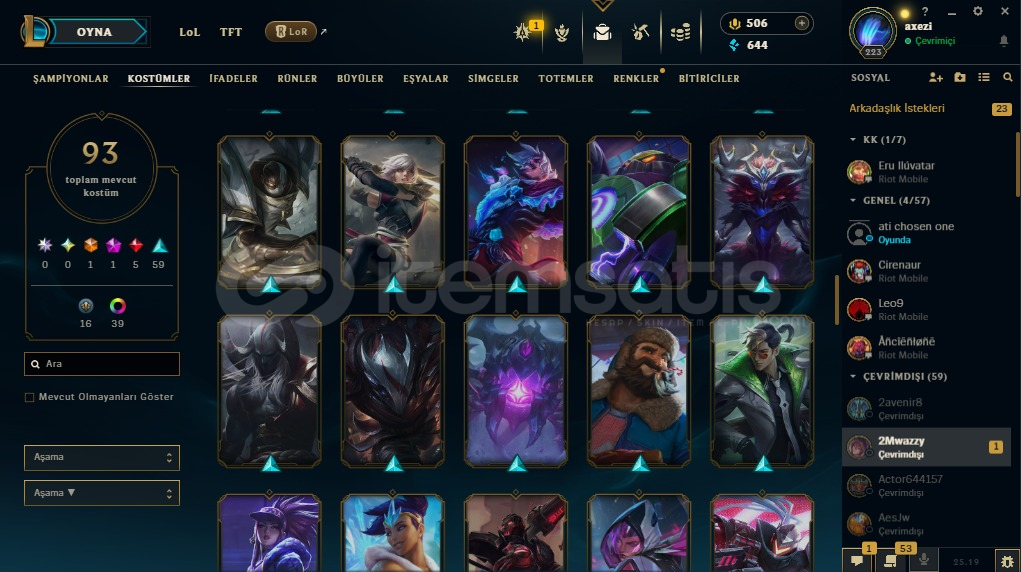 💎 Riot Hesabı Satılık | Valorant (Ölümsüzlük 1) + LoL (Full Şampiyon & 93 Skin)
