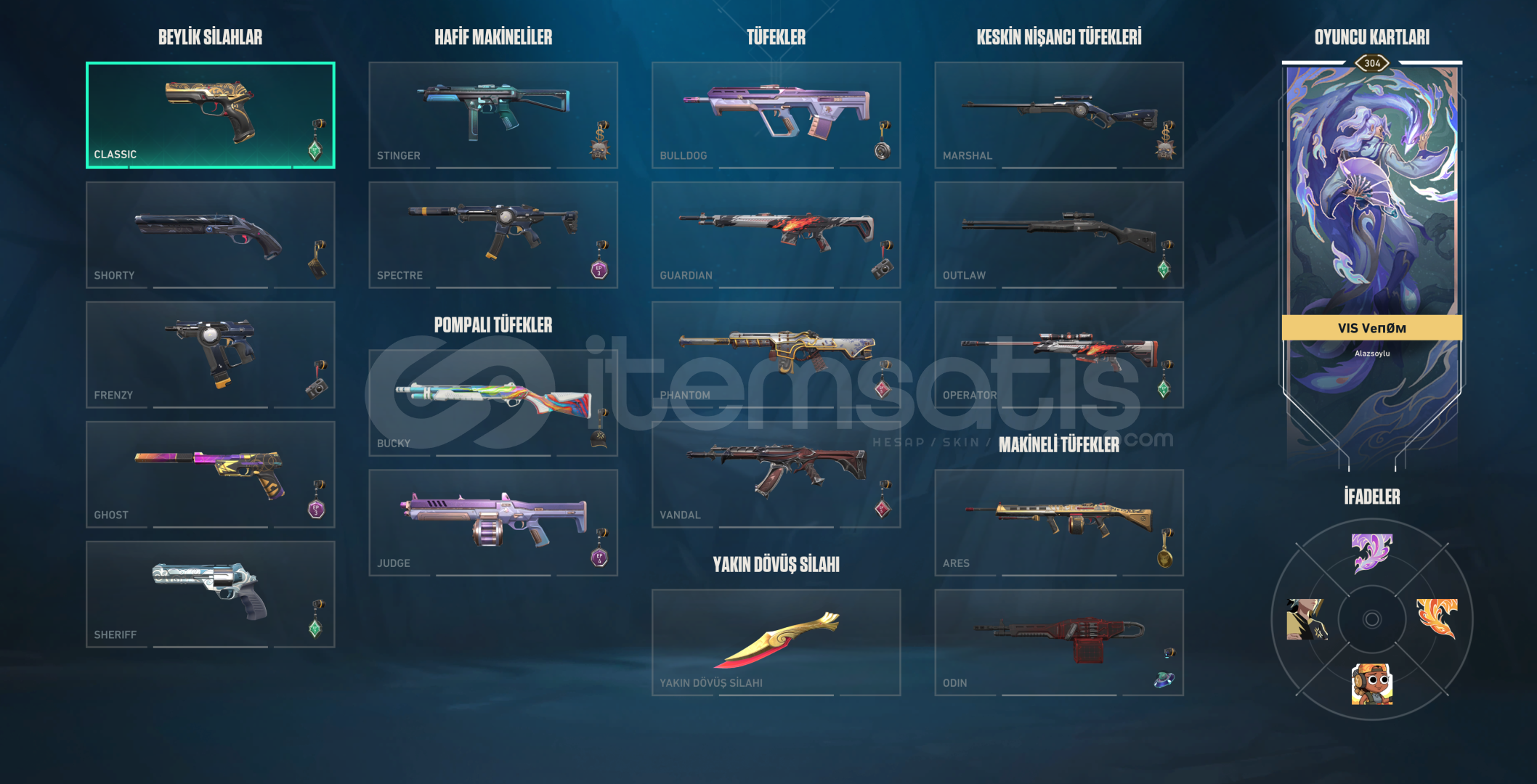 Hesap Immortala kadar çıkmıştırHesap 304 LVLImmortal Uğuru vardır.810 Radyanit ve 146 VPDeğerli skinler : Yağmacı Vandal - Oni Phantom - Alaz YelpazeBıçak Skinleri : Alaz Yelpaze - 809. Özel Kuvvet Bıçak BattlePass - Başlangıç Muşta BattlePass - Hızlı Ve Ölümcül Karambit BattlePassToplam 65 Adet BattlePass SkiniAçık Olan Ajanlar: Tejo - Vyse - Waylay , D...